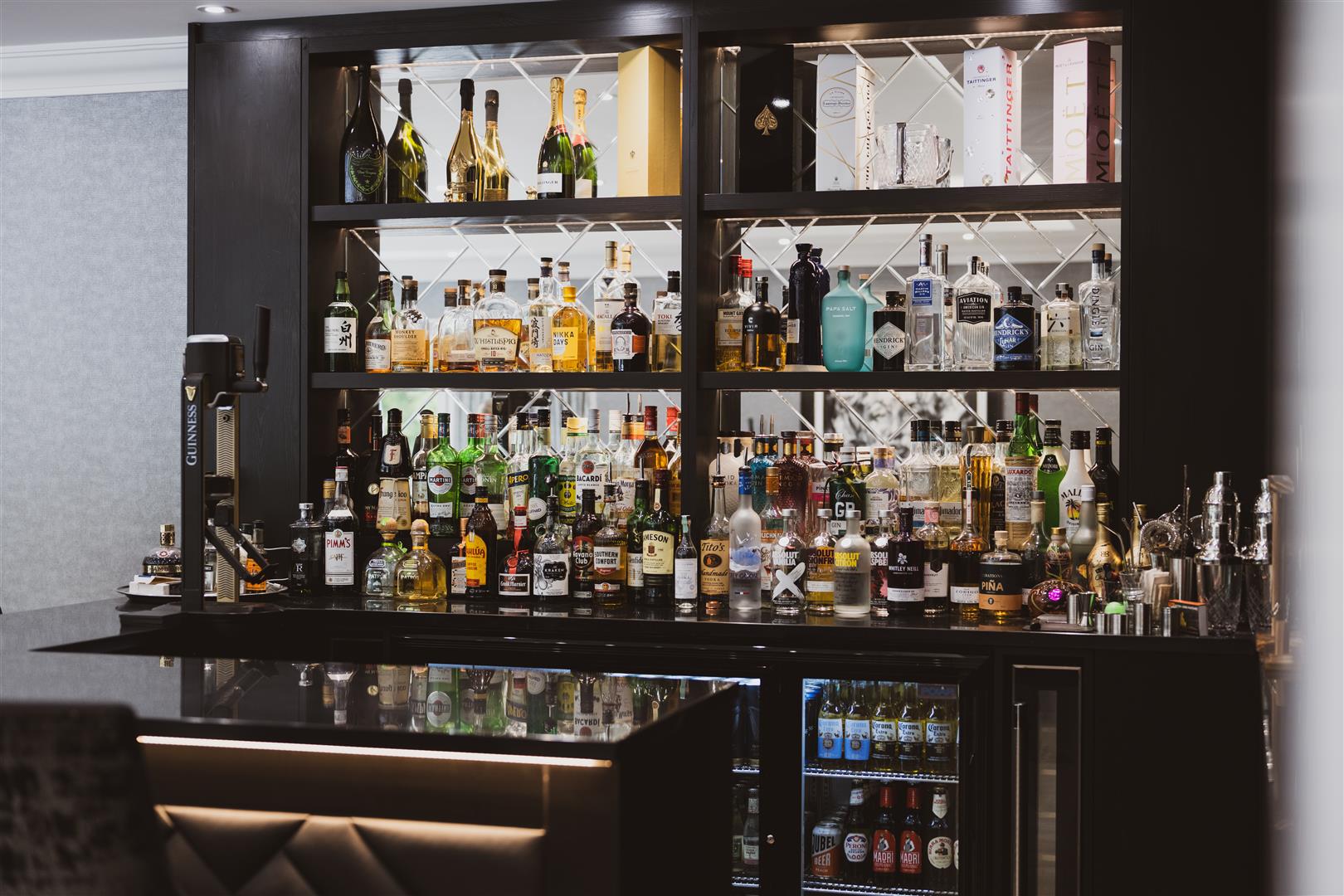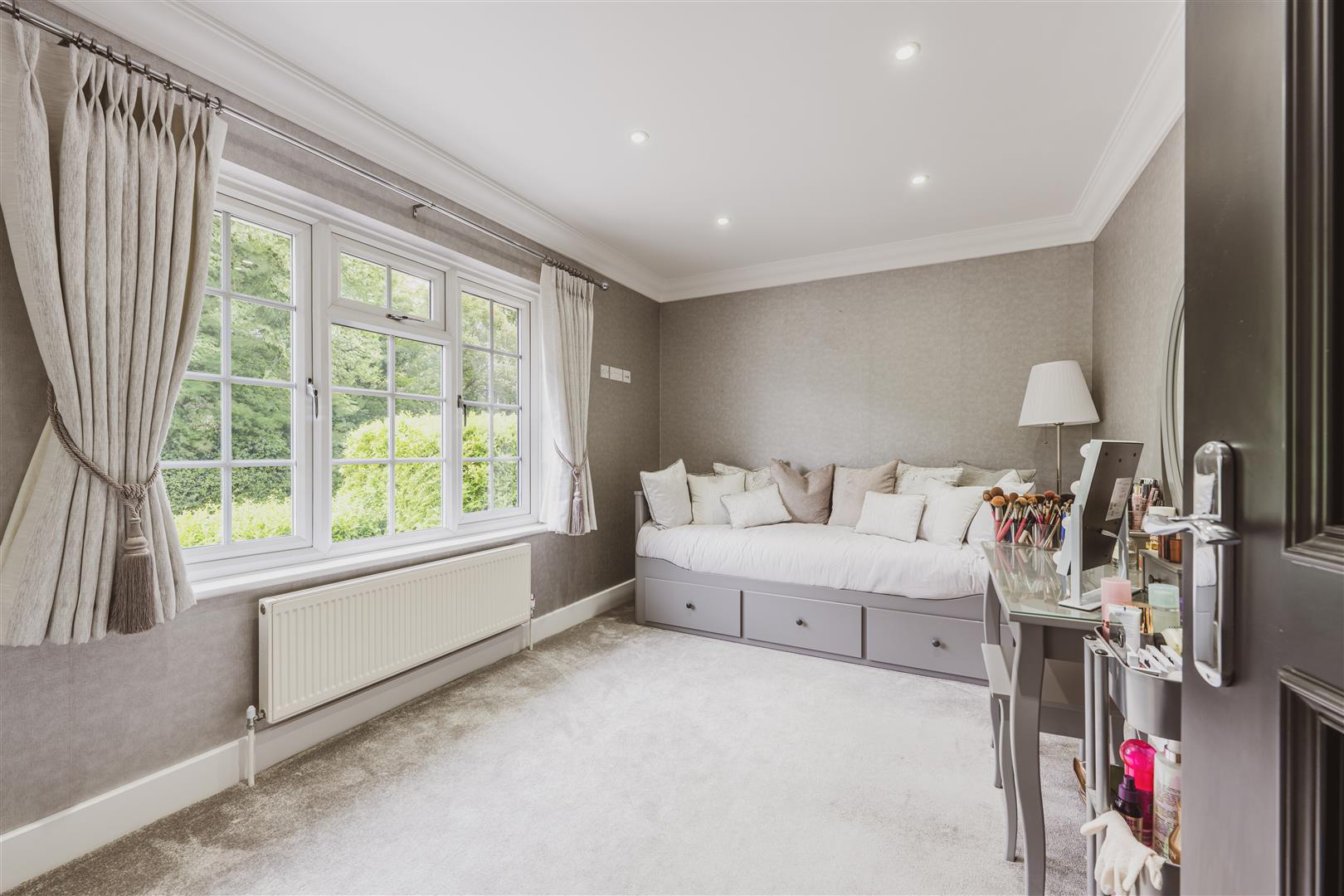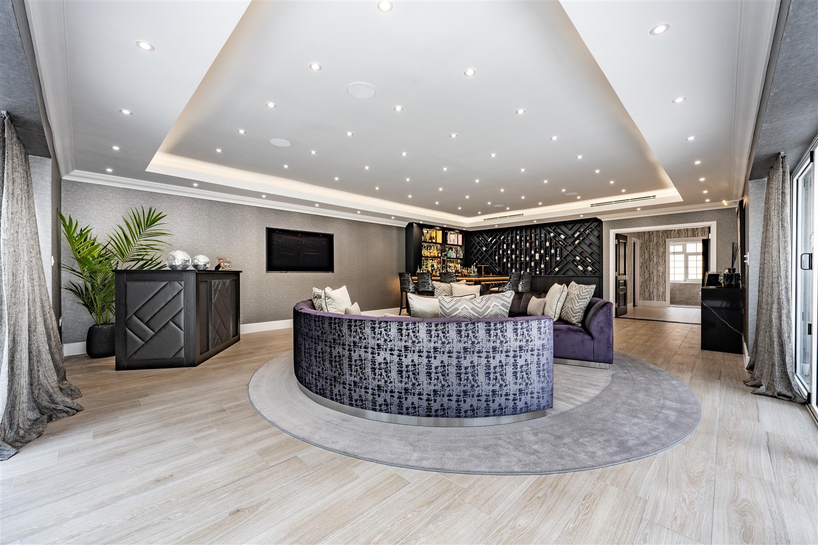 - Home cinema with blackout blinds and a wired in media wall