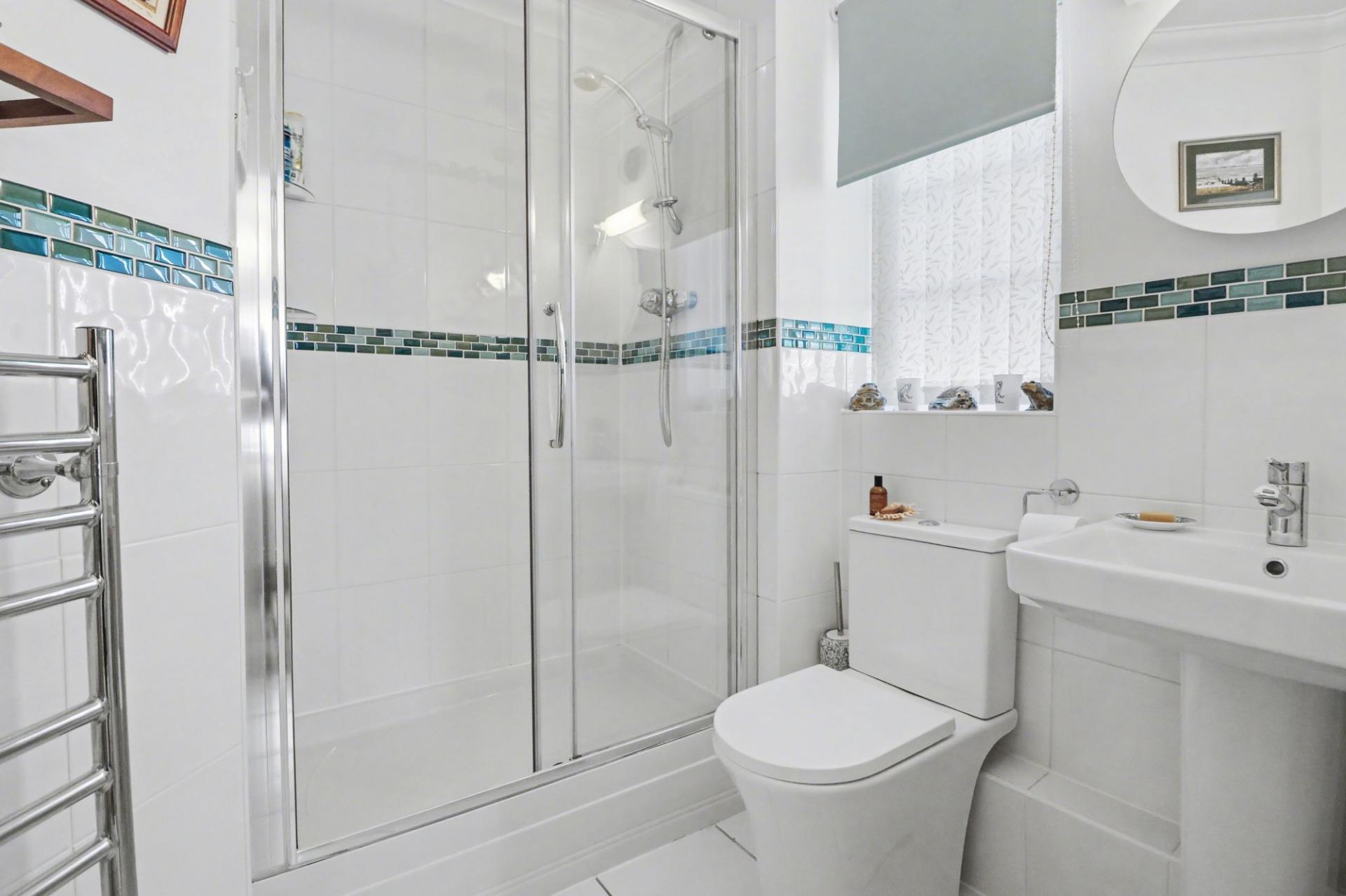 There are two, beautifully presented double bedrooms, the master of which has a fitted wardrobe and modern en-suite shower room, whilst the second bedroom benefits from a built-in cupboard.