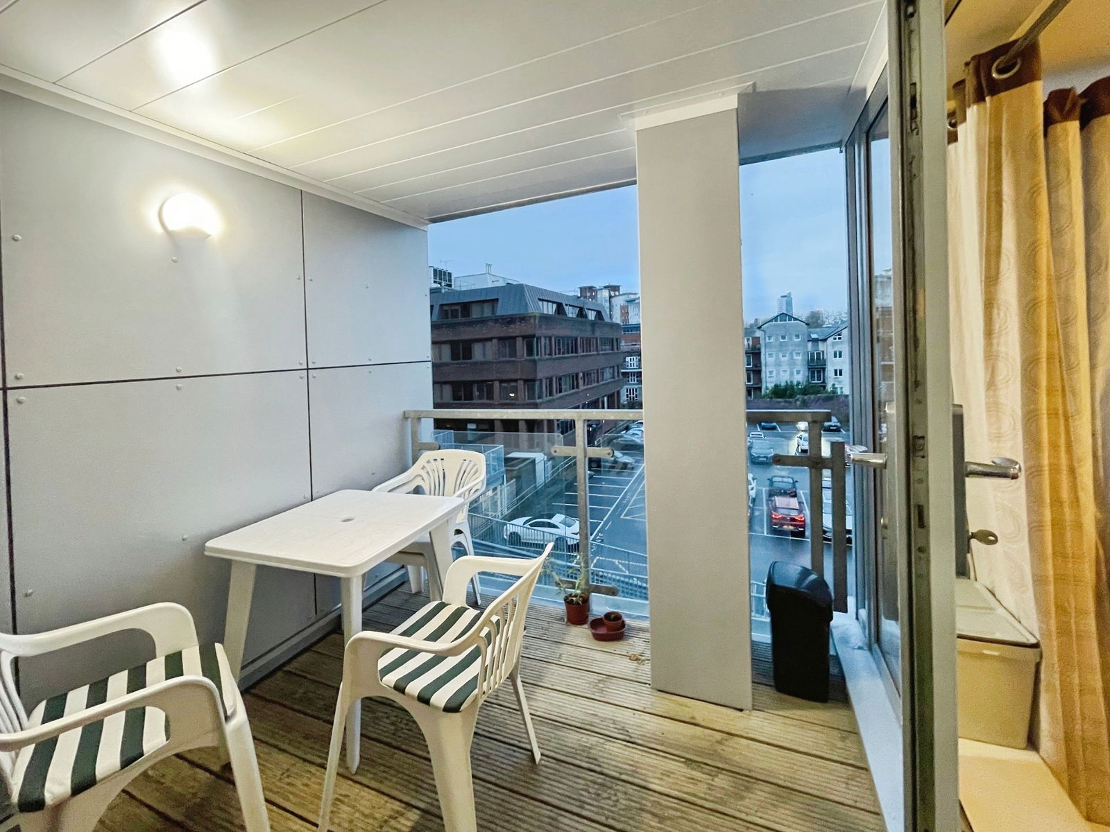 The apartment opens into a bright and welcoming hallway leading into the spacious open-plan living and dining area. Large windows bathe the room in natural light while providing pleasant views across the cityscape. Neutral décor enhances the sense of space and gives the home a calm, modern feel. From here, doors lead onto the private balcony—an excellent spot for morning coffee or evening relaxation.