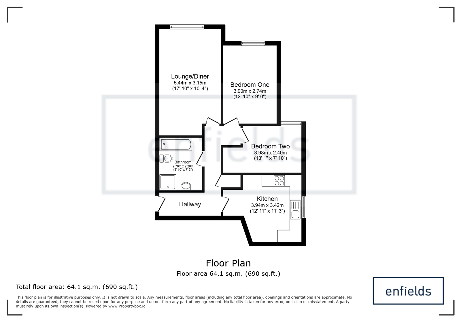 - First-floor two-bedroom apartment
