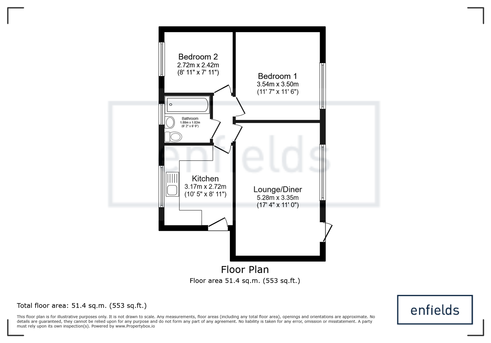 - Two-bedroom ground floor apartment