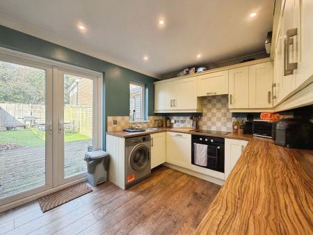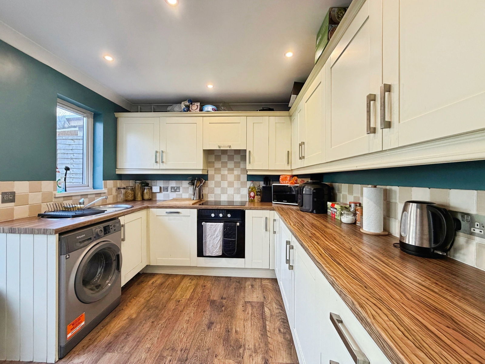 The ground floor comprises a spacious lounge which flows naturally through to the kitchen area, creating a practical space for both relaxing and entertaining. The modern fitted kitchen offers good storage and worktop space, making it well suited to everyday living.