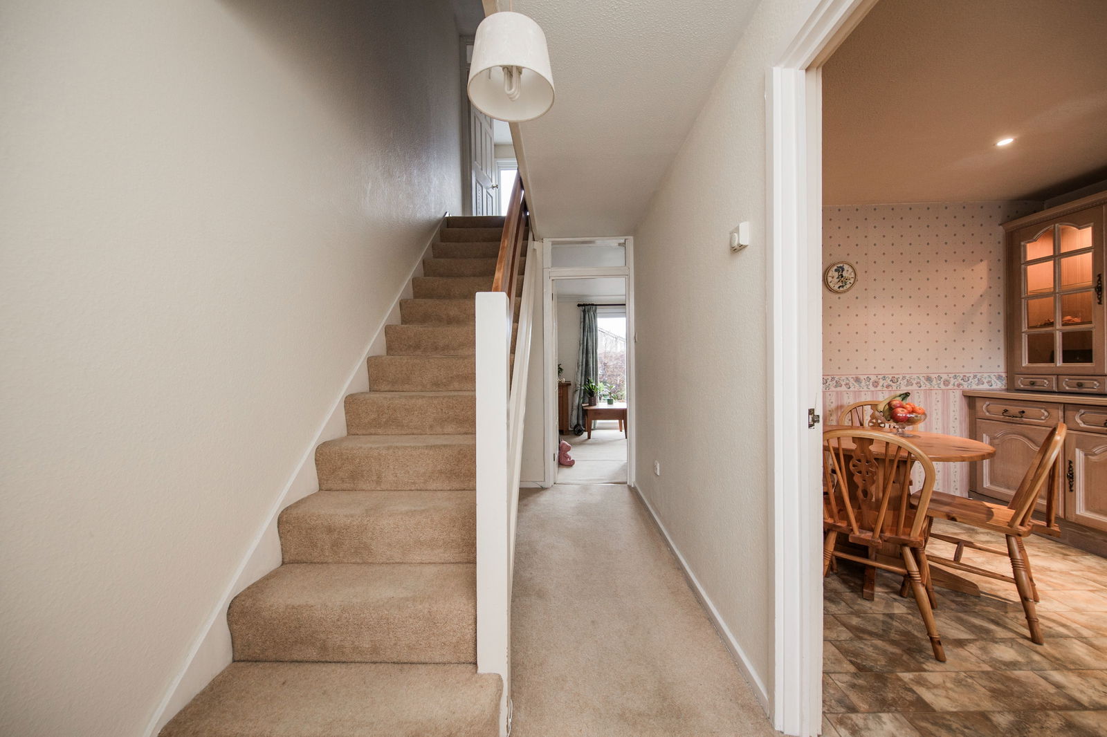 Carpeted stairs to first floor.