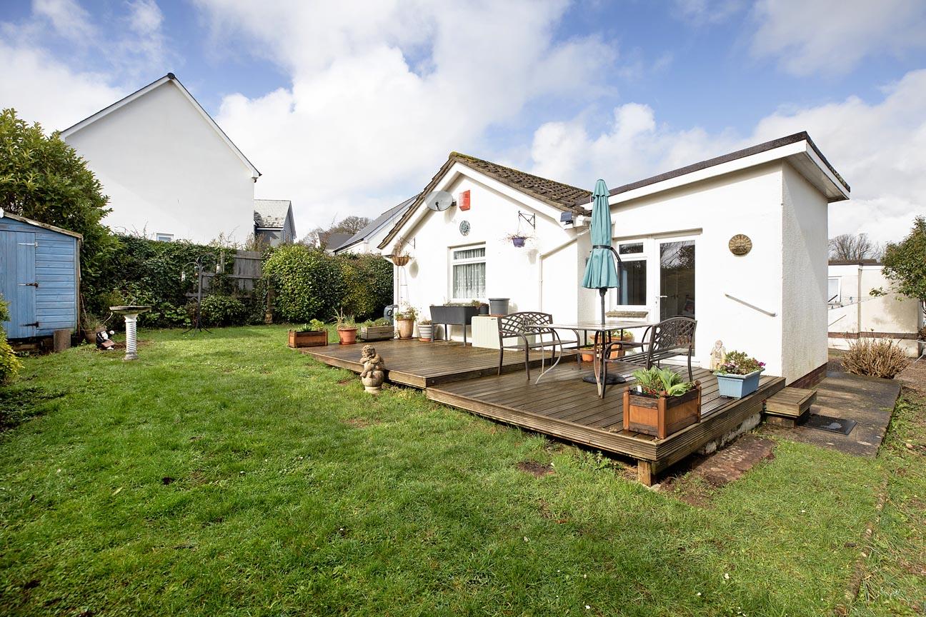 OUTSIDE: To the front of the property is a driveway providing off road parking leading to the garage and a good sized area of lawn. A pathway leads to the front door and to a gate giving side access to the gardens. The rear garden is predominantly laid to lawn with attractive shrubs and a raised decked area provides a lovely place to sit and enjoy the sun on a fine day. To one side is a paved path a good sized area mainly laid to chippings and to the other side of the bungalow comprises a paved path and area of level lawn.