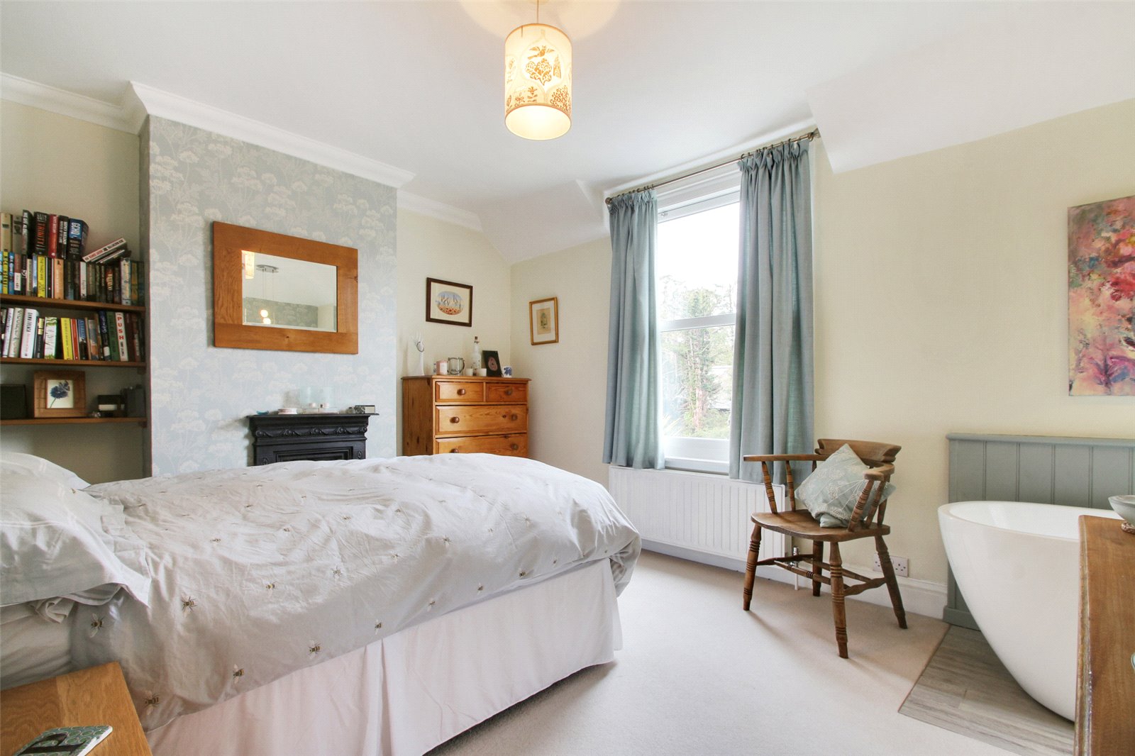 - Master bedroom with roll top bath