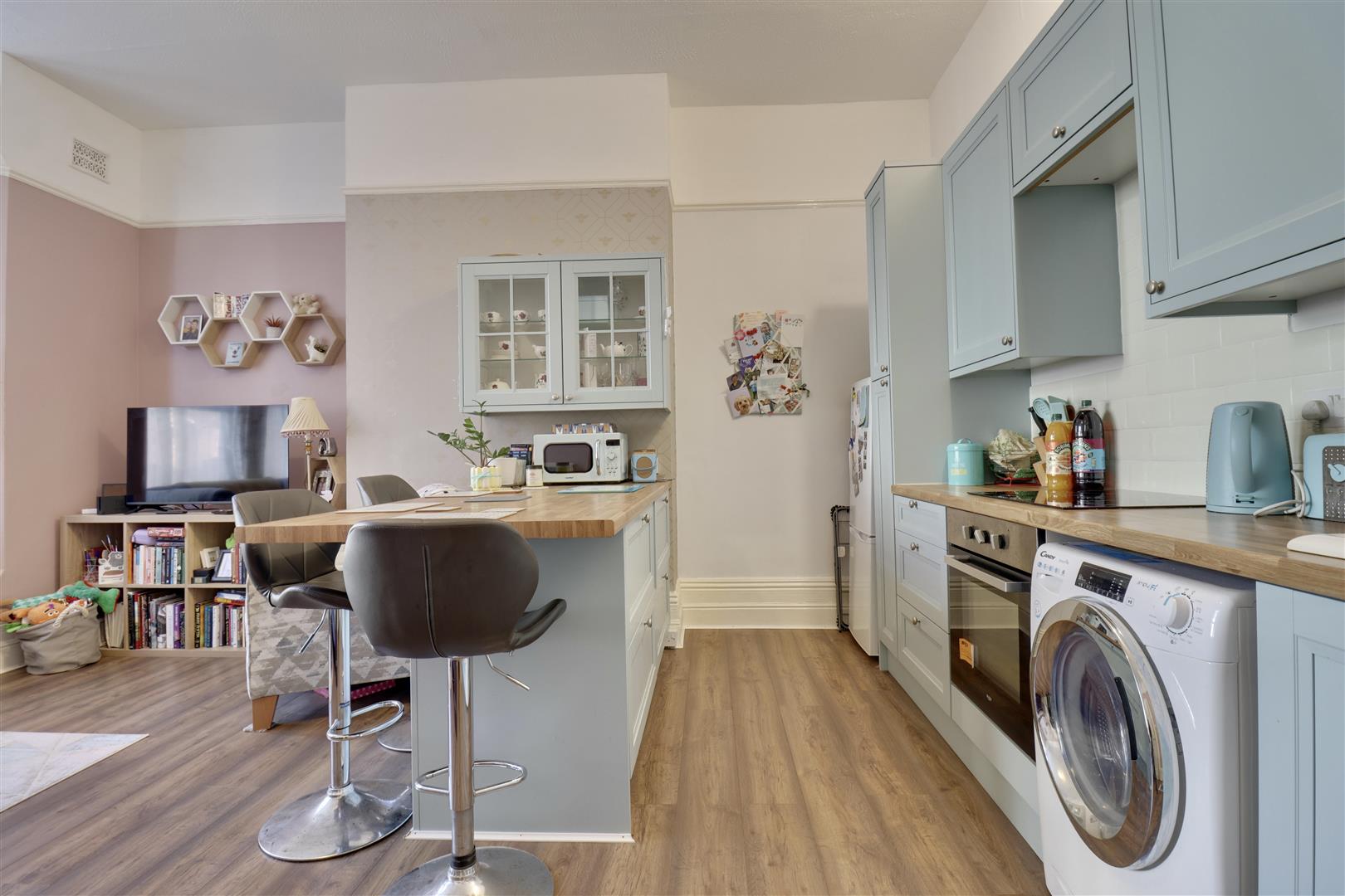 The accommodation comprises a good size double bedroom, bathroom and open plan lounge / kitchen that is the obvious heart of the home. The property has it's own entrance which in turn means you have a small front garden to enjoy with mature trees giving a lovely outlook from the bay window.