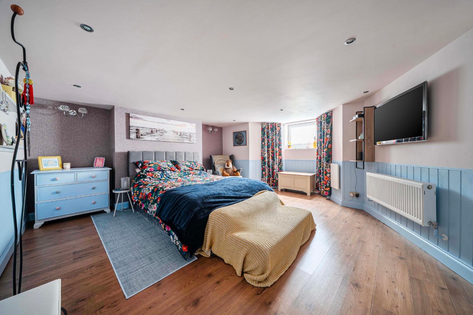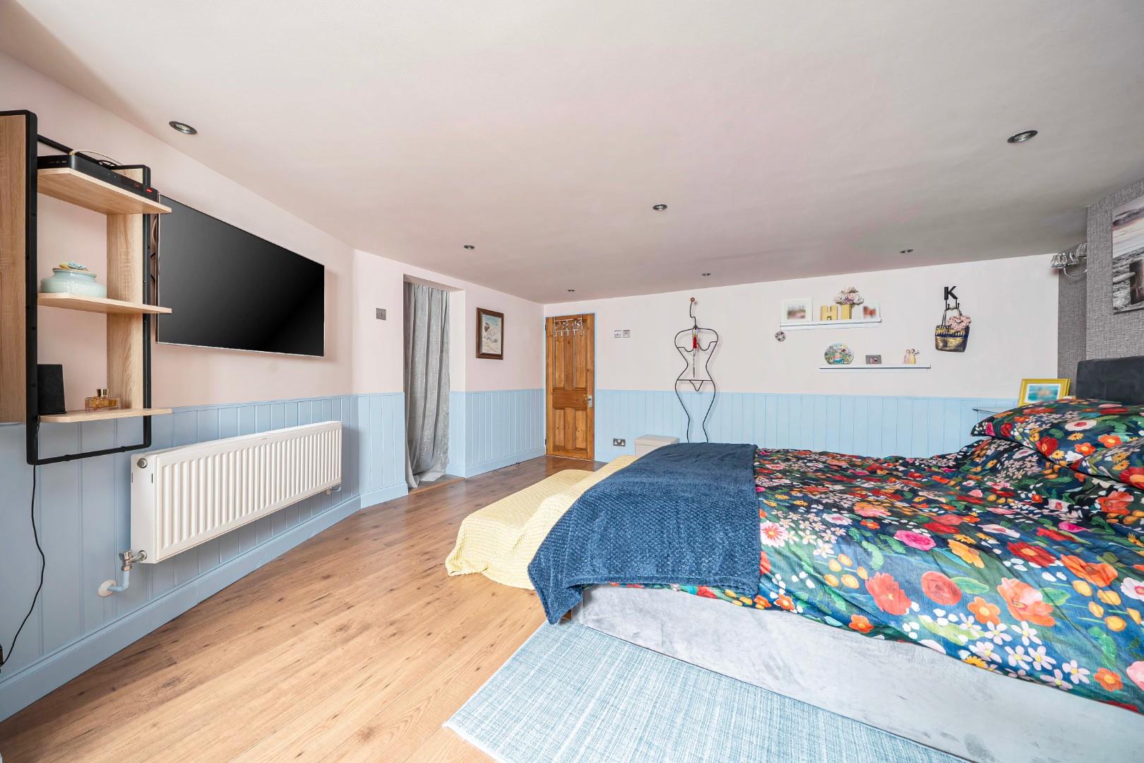 On the lower floor you will find a further large bedroom as well as a shower room, ideal if you have guests with facilities on both floors. The hall area sets up as a super 'work from home' space. Outside you will find a beautiful garden with a shed / summer house arrangement giving additional options.