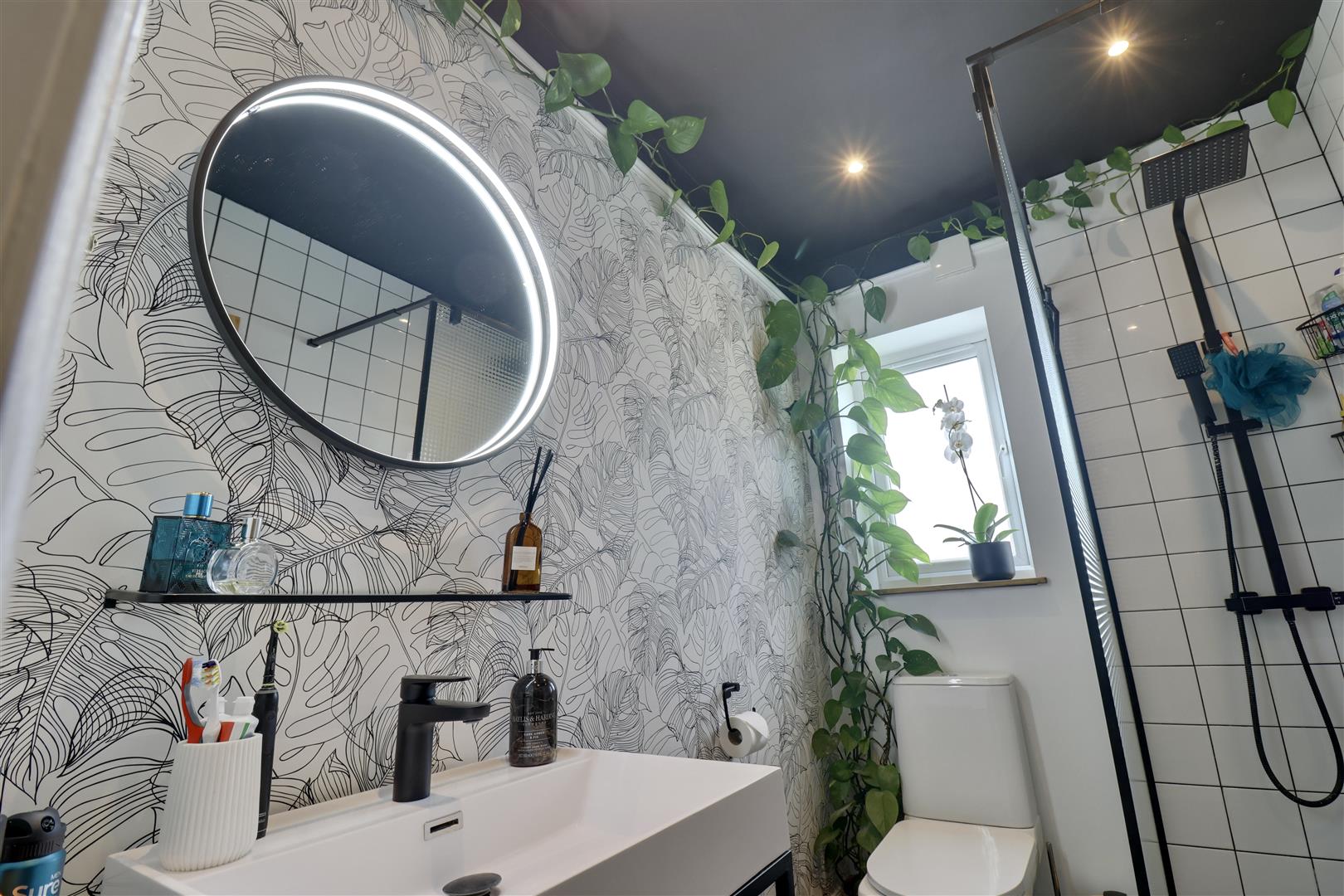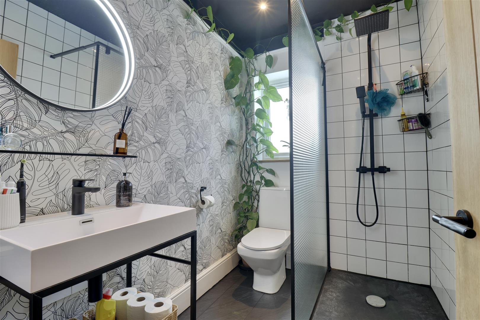On the first floor you will find a generous double bedroom with built in wardrobe space, a 2nd bedroom currently set up as a 'work from home' space and an eye catching shower room which completes the set.