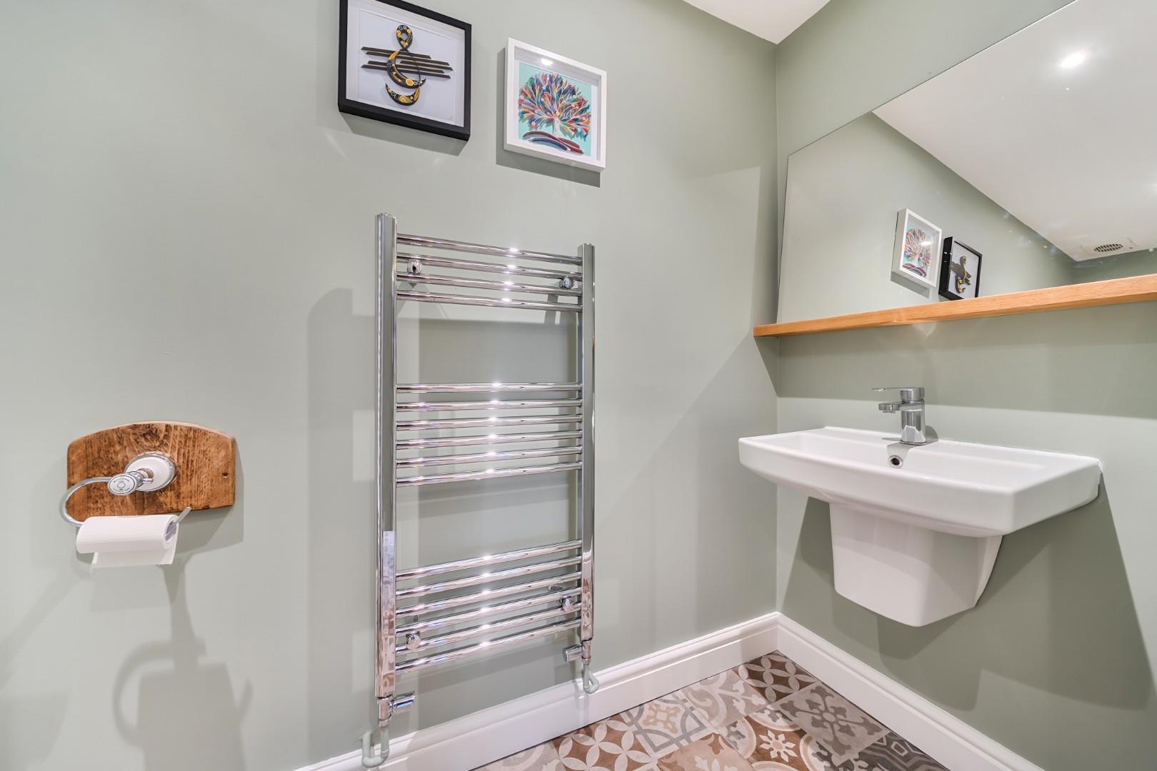 Upon entry you are greeted with a spacious hall which leads seamlessly into a good size living room providing a warm and welcoming space. The heart of the home is undoubtedly the Kitchen/ dining room, the perfect spot for families and friends to spend time together. A large kitchen island provides a base for the room allowing for an easy transition into the additional seating/ reception room and built in dining table with surrounding bench where space has been used superbly. Bi-fold doors open up onto a private west facing giving the indoor, outdoor living. Completing the ground floor is a W/C and basement which is currently used as a utility room.