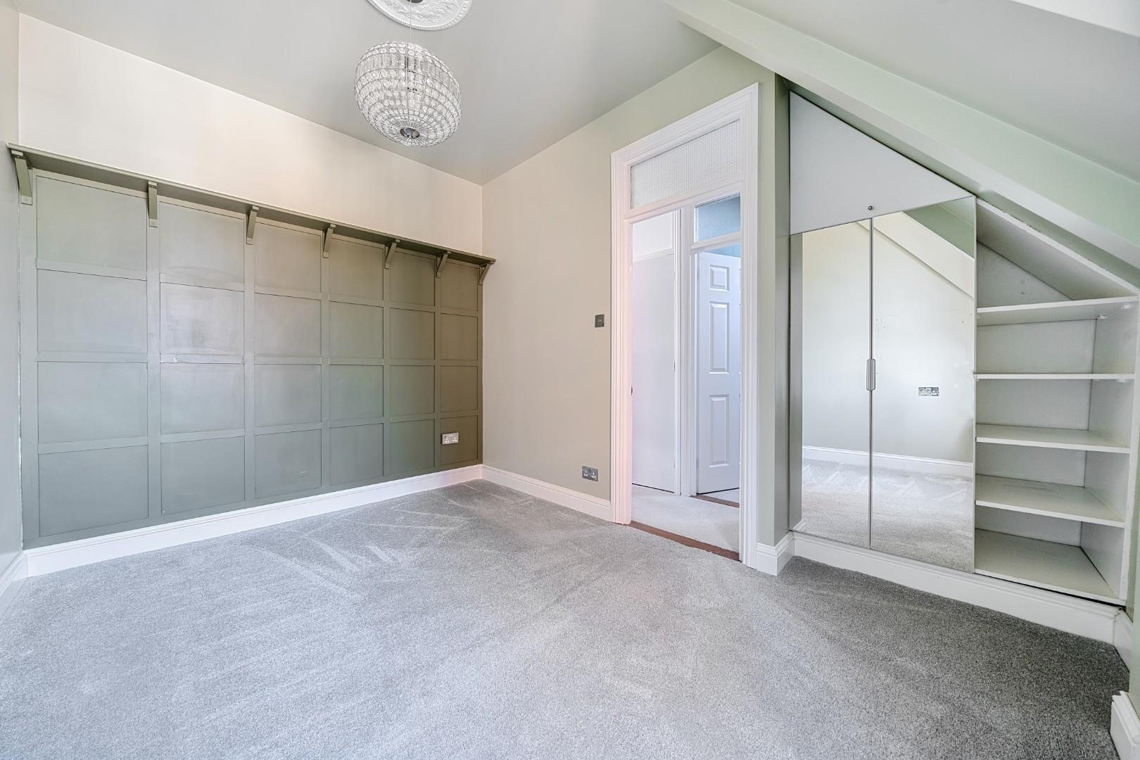 The entrance hall leads to a very generously sized living/dining area, offering plenty of space and versatility. The kitchen is found at the South wall of the property, with three tall sash windows flooding the room with natural light. The first floor is completed with a bedroom and shower room, and upstairs holds the en-suite bedroom.