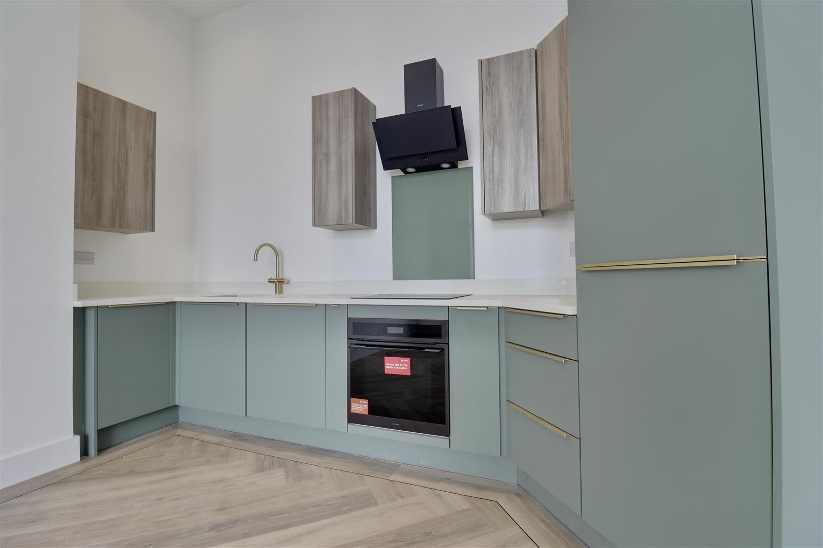 The spacious lounge/diner is flooded with natural light from the impressive balcony, creating a wonderful space for both relaxation and entertaining. The fully fitted kitchen features integrated appliances, a quartz worktop, and has been finished to an excellent specification.