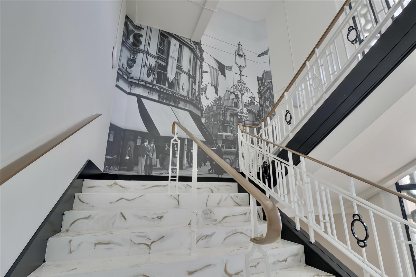 Upon entering via the well designed communal areas, featuring an original marble staircase, you are welcomed into a bright entrance hall, complete with a storage cupboard and access to the fitted bathroom, featuring high end finishes and a shower over the bath.
