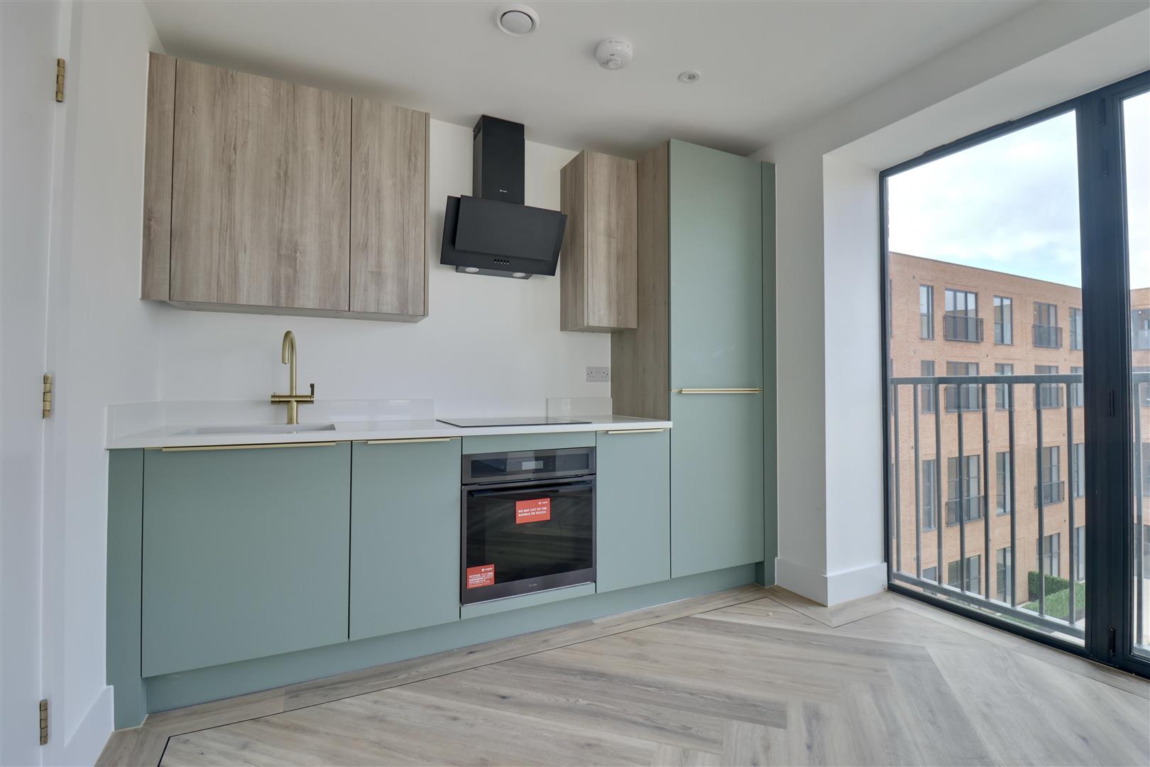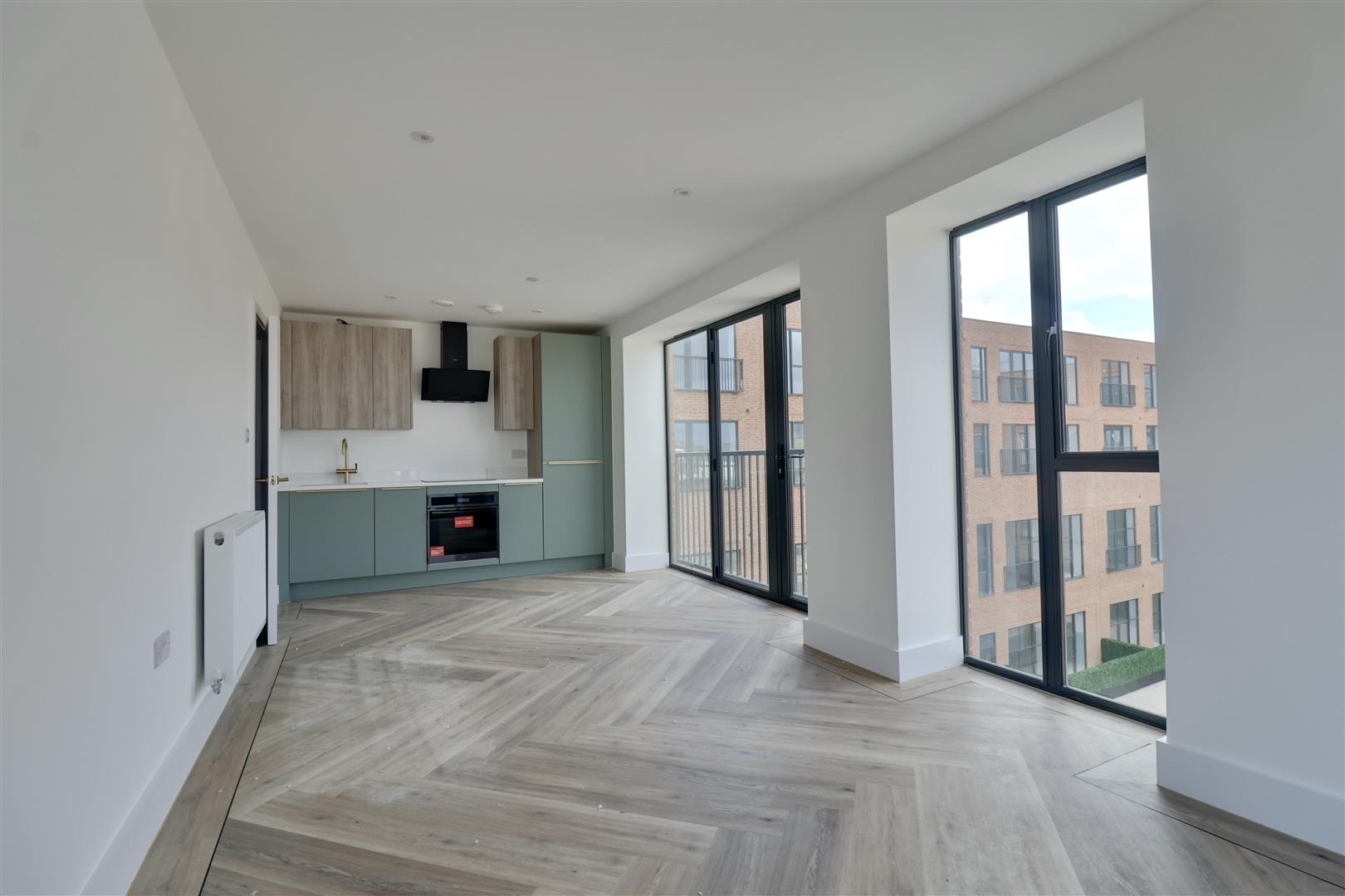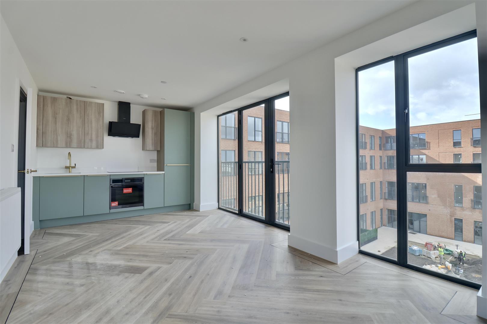 The spacious lounge/diner is flooded with natural light and benefits from a Juliet balcony to the west and full balcony to the north, creating the perfect space for relaxing or entertaining. The fully fitted kitchen features integrated appliances, a quartz worktop, and has been finished to an excellent standard.