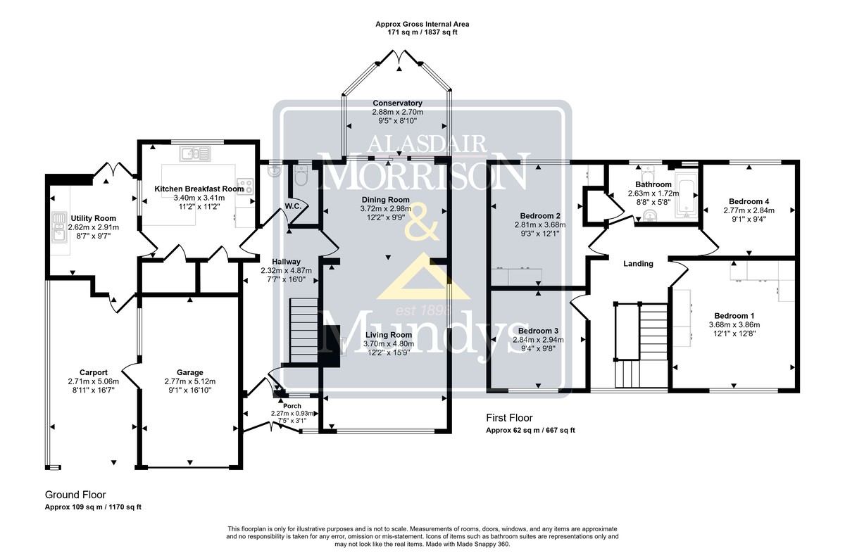 The kitchen breakfast room is thoughtfully designed with granite work surfaces, a breakfast bar, and two useful pantry cupboards, creating a practical and sociable space for family life. A separate utility room provides additional storage and direct access to both the garden and the carport. Upstairs, a striking galleried landing leads to four generously sized bedrooms and a stunning refitted family bathroom with a shower over the bath.