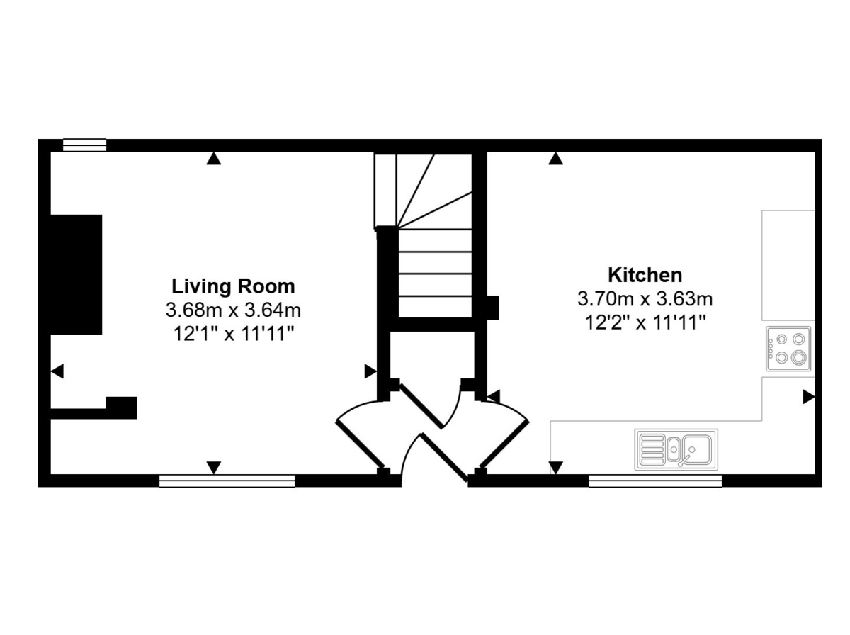 LIVING ROOM 12' 1" x 11' 11" (3.68m x 3.63m) With windows to the front and to the rear elevations, radiator, beams to the ceiling, feature Inglenook style chimney breast and an enclosed staircase leading to the first floor.