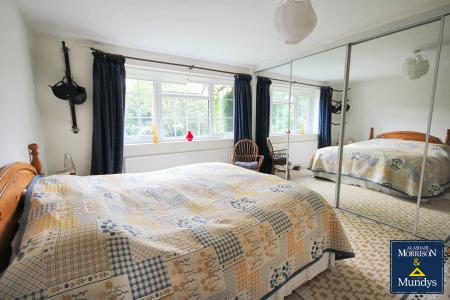 BEDROOM TWO 12' 6" x 10' 6" to front of wardrobes (3.81m x 3.2m) With uPVC double glazed window to the front elevation, radiator and built-in wardrobes with mirrored sliding doors.
