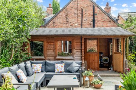 GARDENS The property sits on a delightful plot which has been professionally landscaped to include attractive raised beds and well-stocked flower and shrub borders to the front with side access to the rear garden. The secluded rear garden is fully enclosed on all sides, has a Southerly aspect and is beautifully landscaped to include a paved patio seating area in Oyster slate, well-stocked flower and shrub beds and borders, a level lawned area, pergola with climbing plants, wall lights on automatic timers and a Superb log cabin/summer house in Norwegian pine with shingle roof, power, light and double glazing.