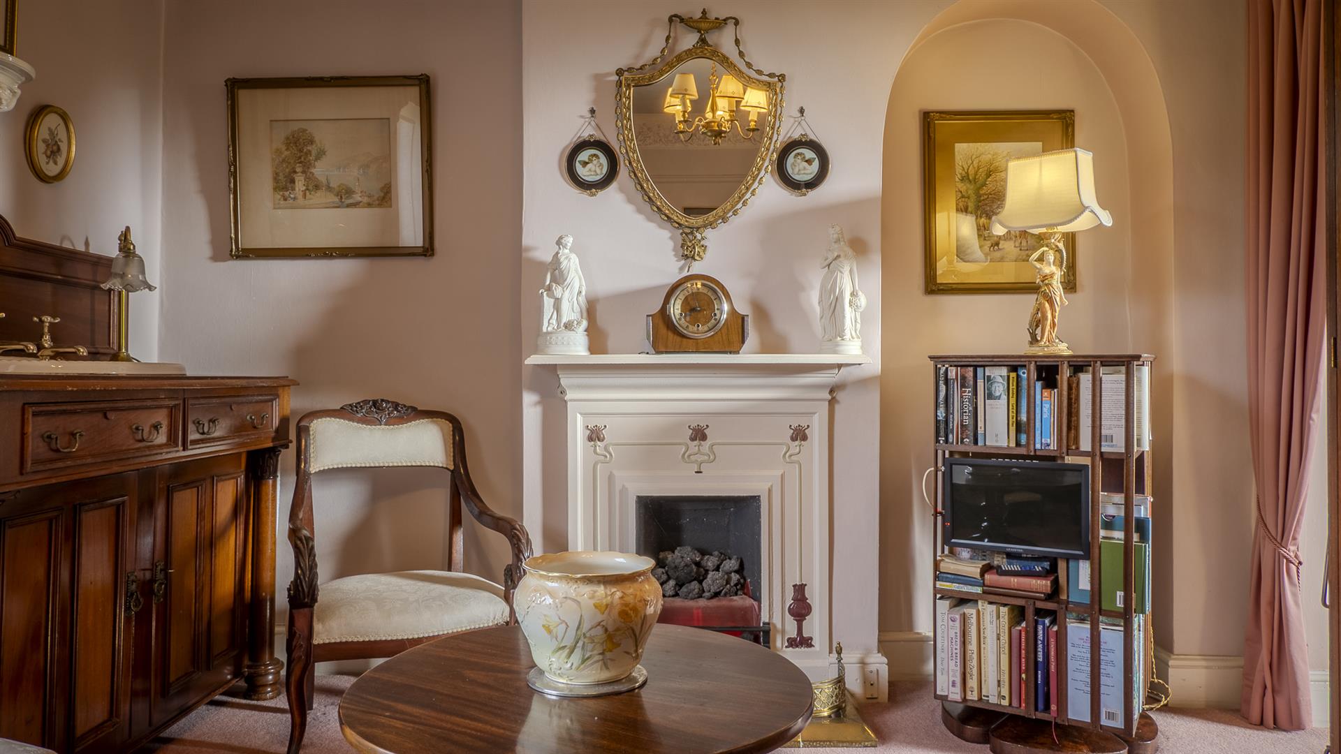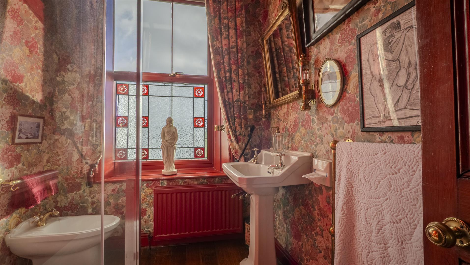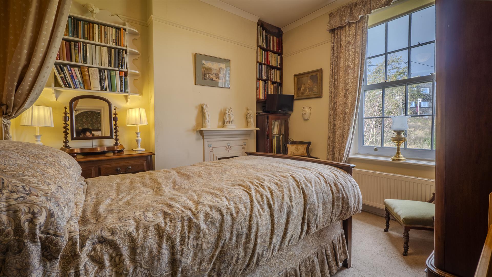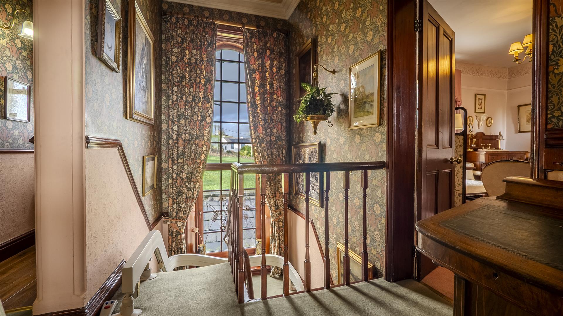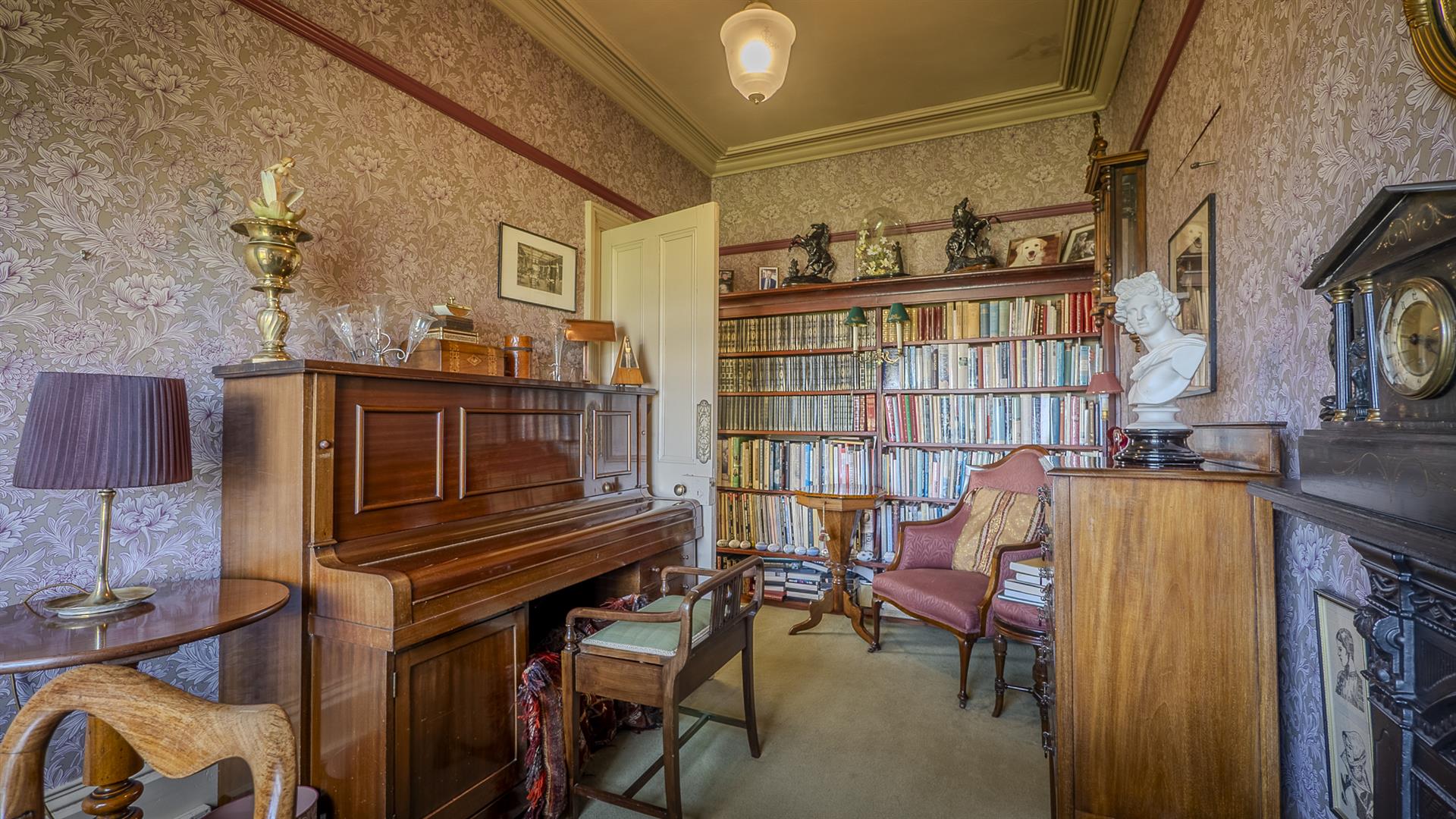 - Period features including sash windows, ceiling roses, and William Morris wallpaper