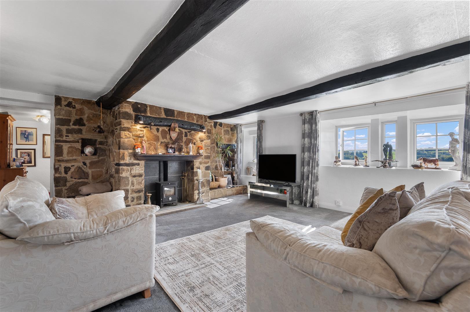 - Stunning countryside views from most windows, and rustic interiors