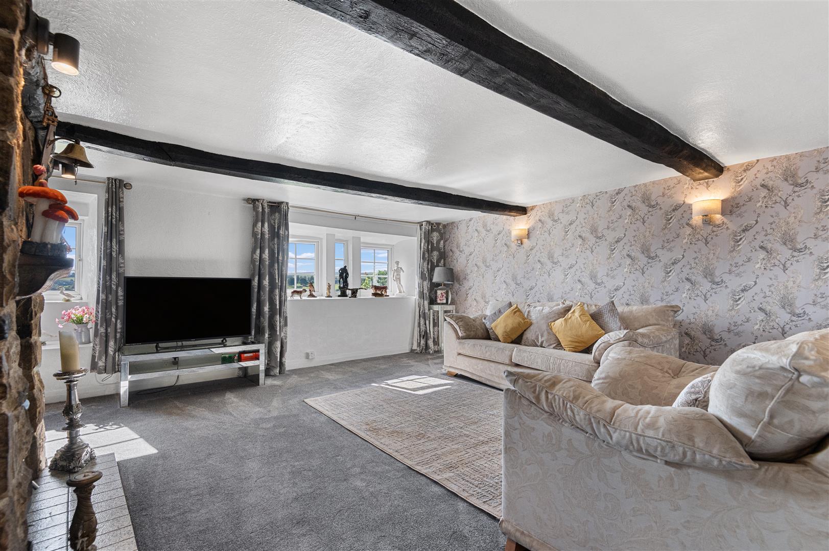 - Four-bedroom farmhouse with beams, fireplaces, and original period features