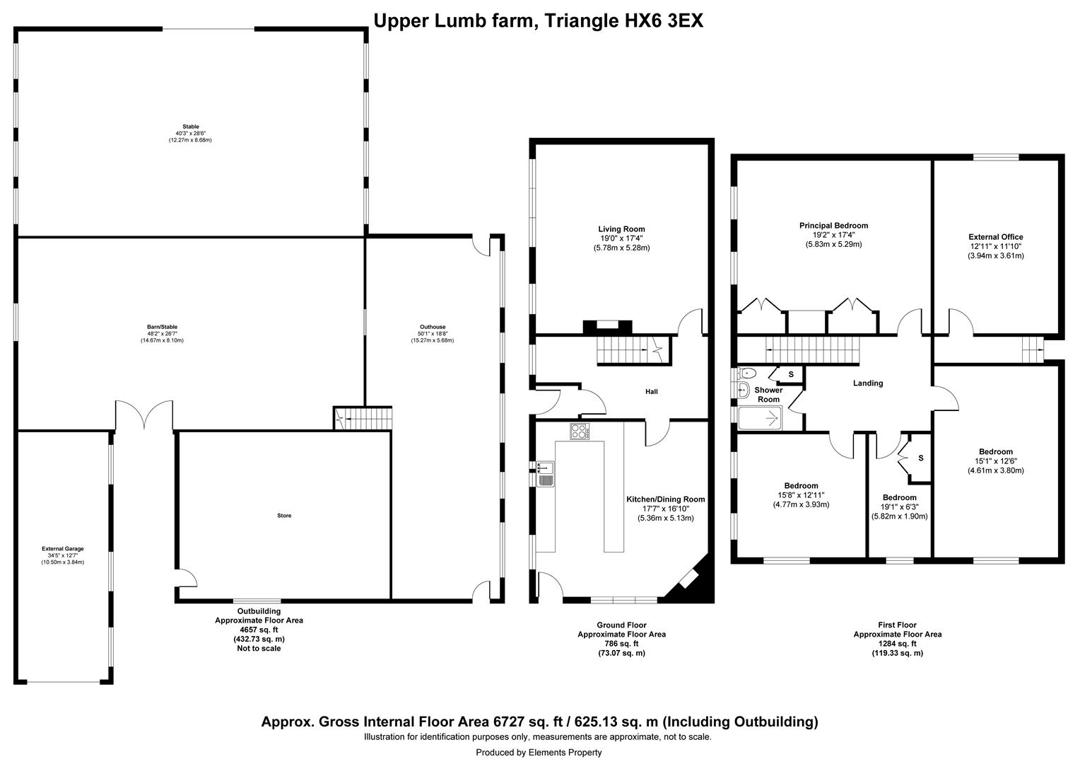 - Includes single garage, driveway parking, and numerous outbuildings