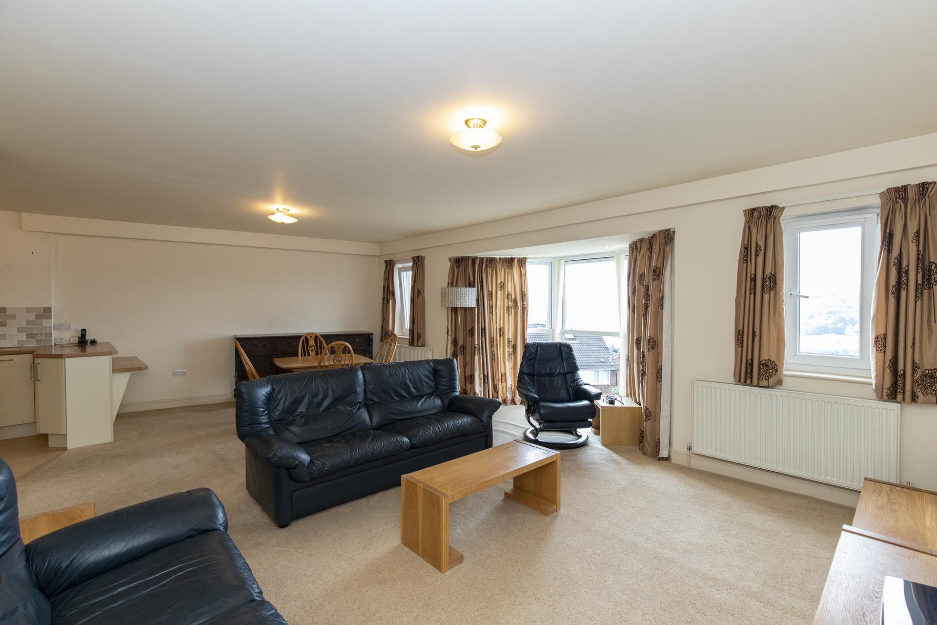This second floor apartment provides spacious and easily maintained accommodation that briefly includes a superb open-plan living room and kitchen with the advantage of superb south facing panoramic views, two double bedrooms, en-suite shower and three-piece bathroom.