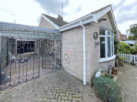 Double wrought iron gated access leading into Car Port with further block paved driveway leading to: