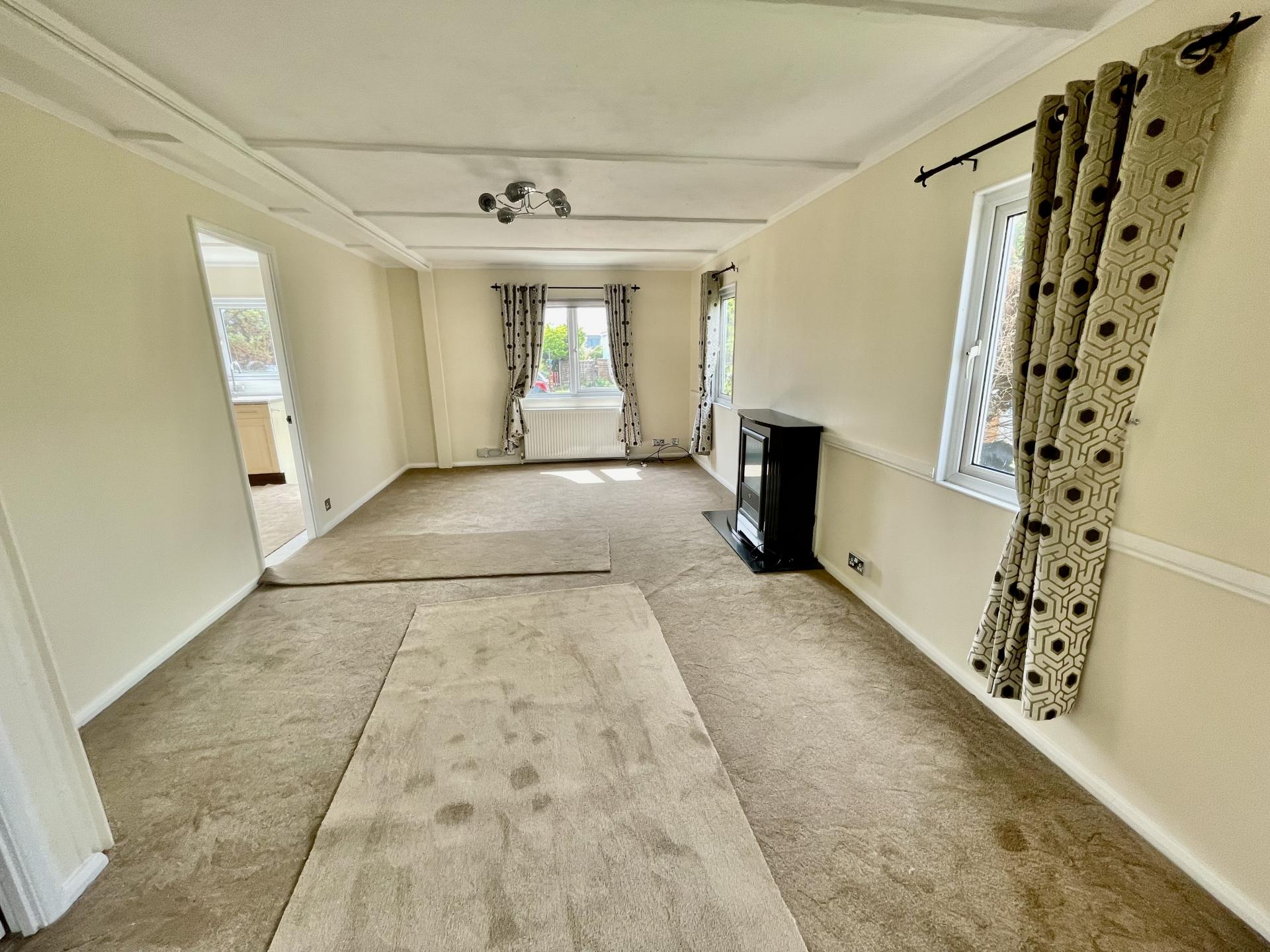 LOUNGE AREA 3.44m(11'3") x 5.88m(19'4") UPVC double glazed window to the front elevation, 2 UPVC double glazed windows to the side elevation, centre light point, double radiator, TV point, telephone point, freestanding electric log effect fire, opening into: