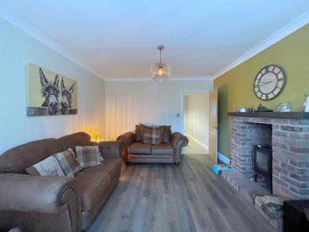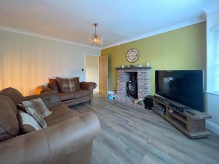 SNUG 11' 6" x 12' 11" (3.53m x 3.94m) Feature brick Inglenook fireplace with multi fuel burner, radiator, ceiling light, vinyl tiled flooring, double glazed bay window.