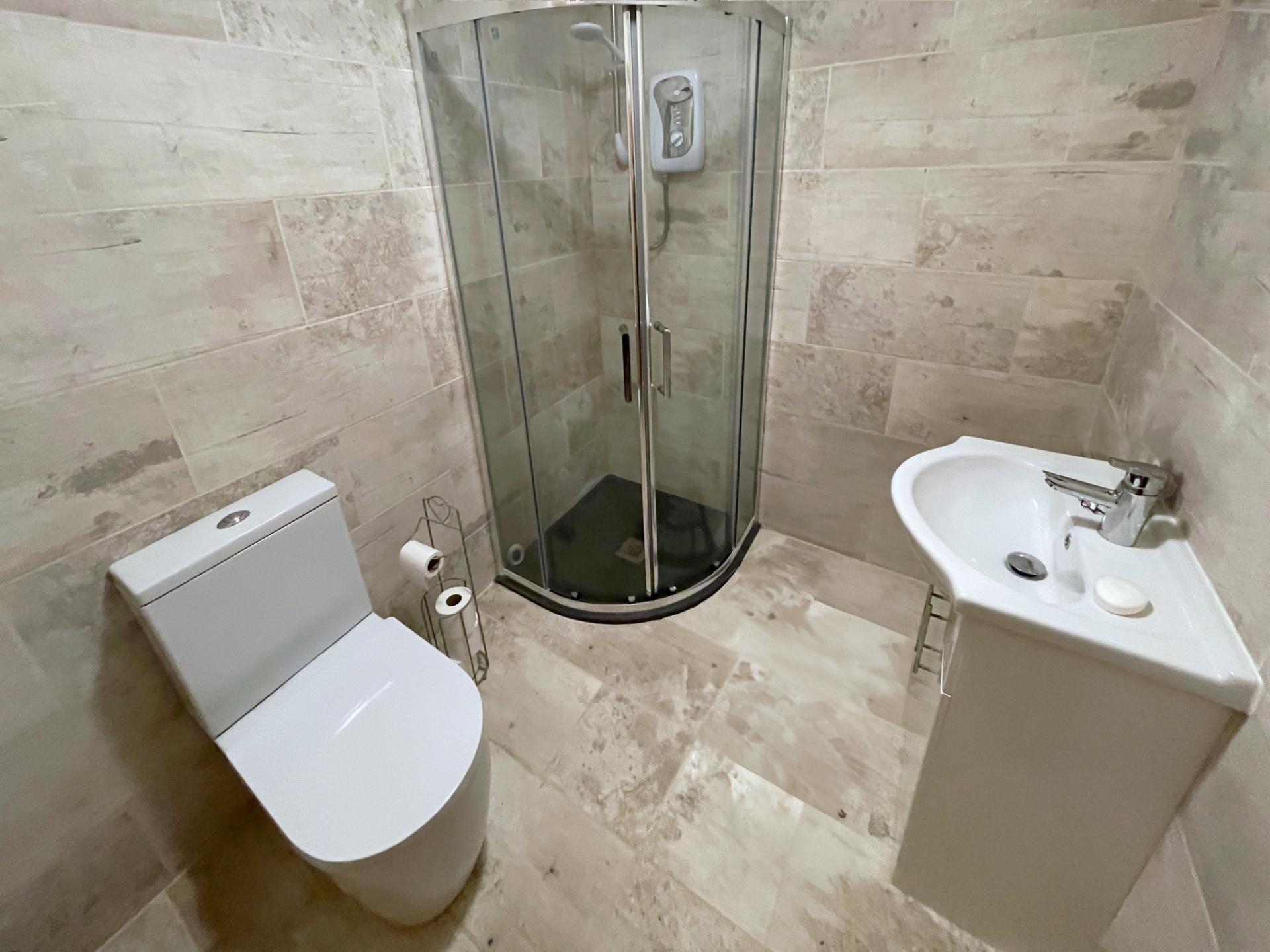 EN-SUITE Fitted with a three piece suite comprising shower cubicle, wash hand basin and WC. Built-in storage, part tiled walls, fitted full length vertical radiator and extractor fan.