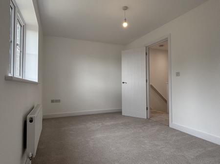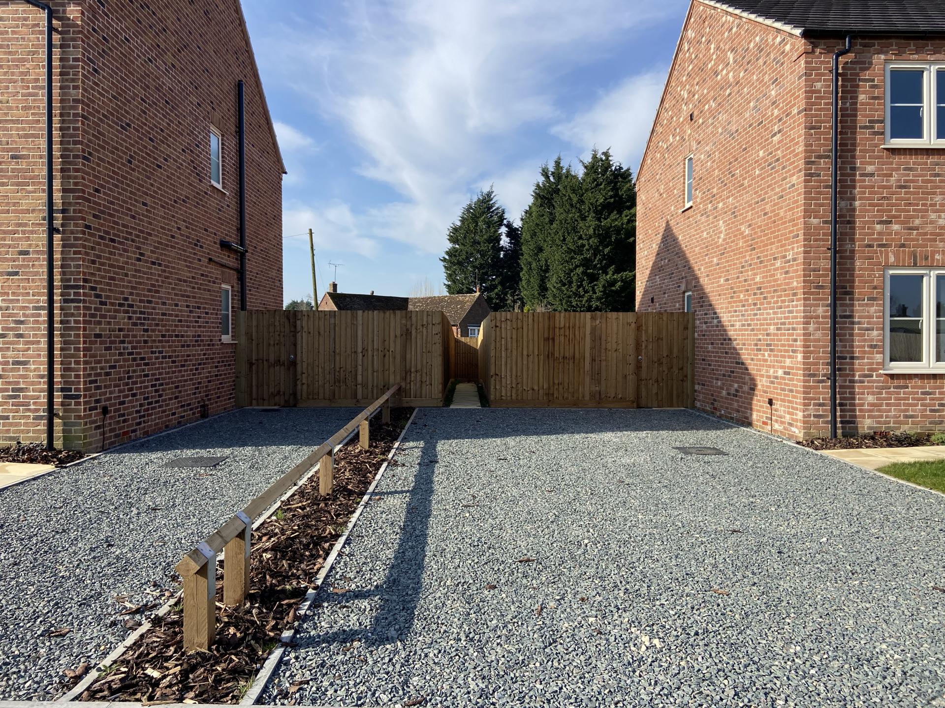 OUTSIDE Gravelled driveway for parking 2 cars in tandem with turfed front garden, and levelled rear garden (ready to turf). Slabbed footpaths and patio with timber fencing to all boundaries. Air source heat pump. Outside Tap. Contemporary black exterior lights to front and rear doors.