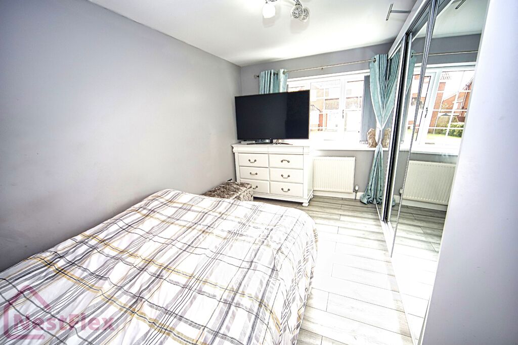 Single bedroom with laminate flooring and UPVC window