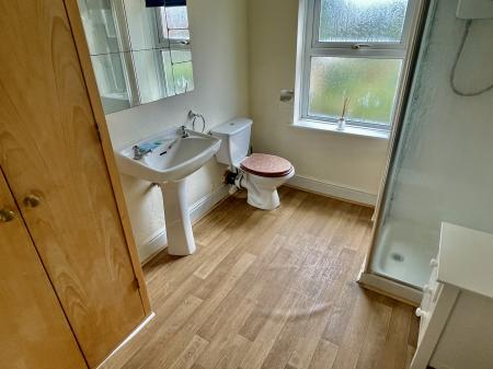SHOWER ROOM 8' 7" x 7' 0" (2.63m x 2.14m) Three piece suite comprising shower cabinet with Triton shower, low level WC, pedestal wash hand basin, cupboard housing the Glow Worm gas fired central heating boiler, vertical radiator/towel rail, ceiling light, obscure glazed UPVC window.