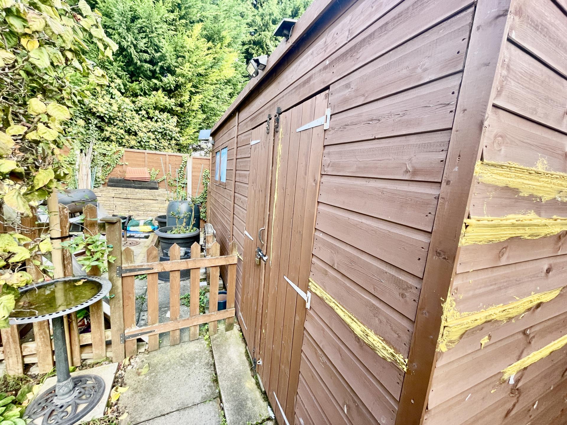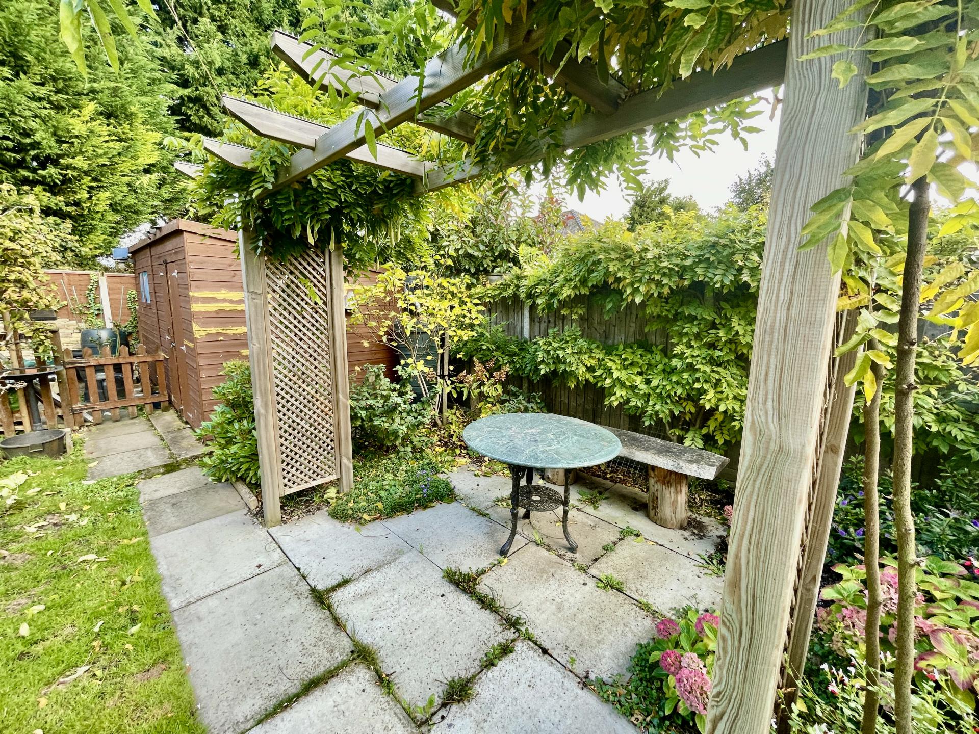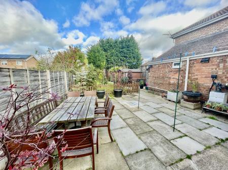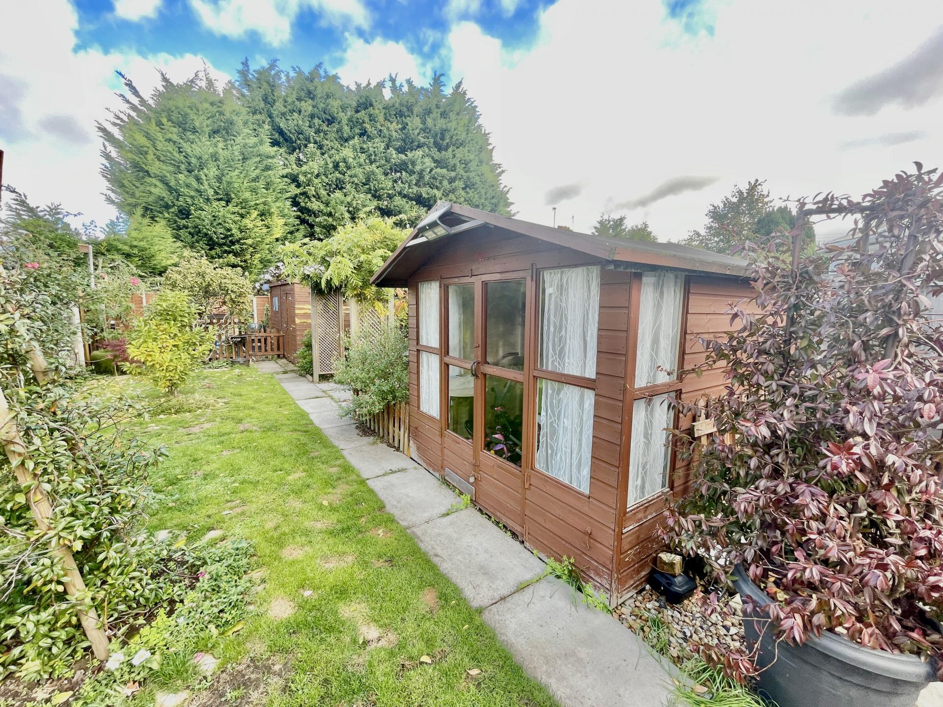 EXTERIOR Via side wooden gate leading into paved pathways with further gate, wooden garden shed, extensive patio area, outdoor lighting, double outdoor electric sockets, tap, leading further to a fenced garden with further patio area, garden mainly laid to lawn with a wide range of mature shrub and tree borders, wooden double door summer house with lighting, workshop/shed with further paved area, fenced boundaries to both side and rear elevations.
