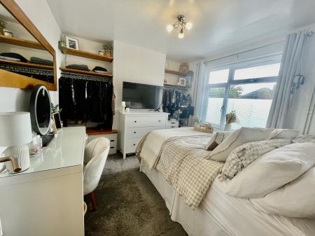 BEDROOM 2 9' 0" x 13' 5" (2.75m x 4.10m) With UPVC double glazed window to the rear elevation, skimmed ceiling with centre light point, double radiator, tv point, fitted wardrobe into recess with hanging rail and shelving.