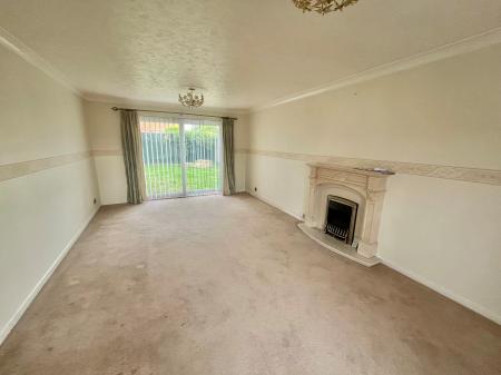 LOUNGE 20' 7" x 11' 10" (6.28m x 3.63m) Fitted carpet, coved and textured ceiling, two ceiling lights, coal effect gas fire and point, radiator, TV point, UPVC patio doors to the rear elevation.