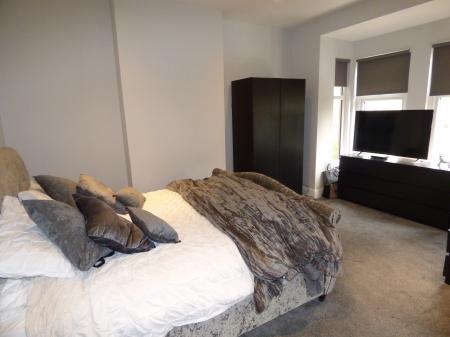 MASTER BEDROOM 13' 3" x 16' 9" (4.04m x 5.12m) maximum Feature square bay window to the front elevation with fitted blinds, recessed ceiling lights, radiator, door to: