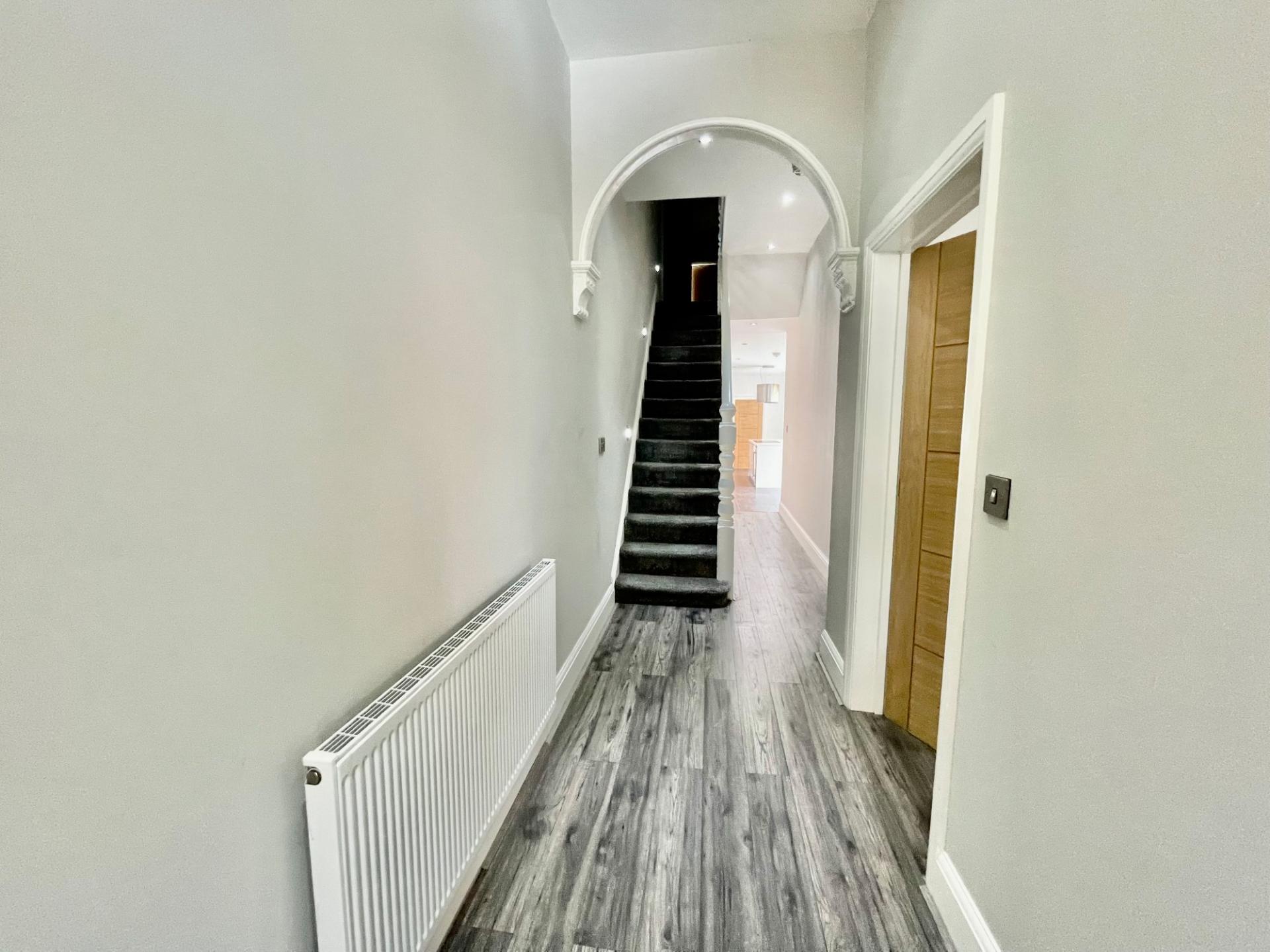 RECEPTION HALL 26' 7" x 5' 5" (8.12m x 1.67m) overall Modern laminate flooring, staircase off.