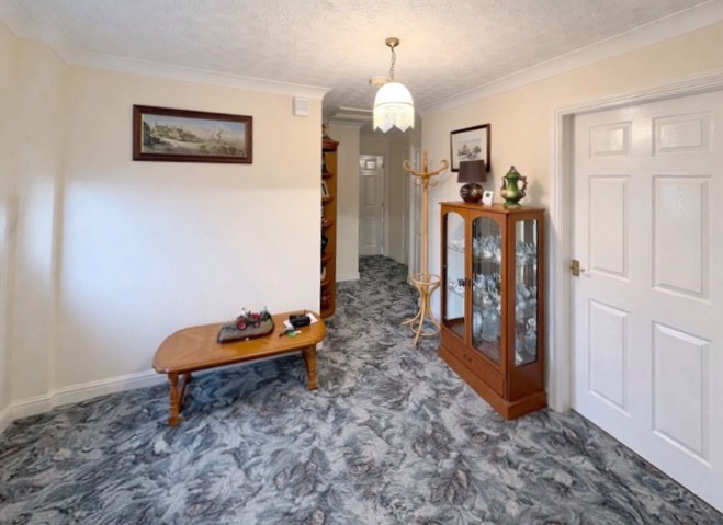 RECEPTION HALL 11' 3" x 9' 2" (3.45m x 2.80m) plus large recess. Coved and textured ceiling, access to loft space, smoke alarm, security alarm control panel, Airing Cupboard housing the Megaflo hot water cylinder, doors arranged off to: