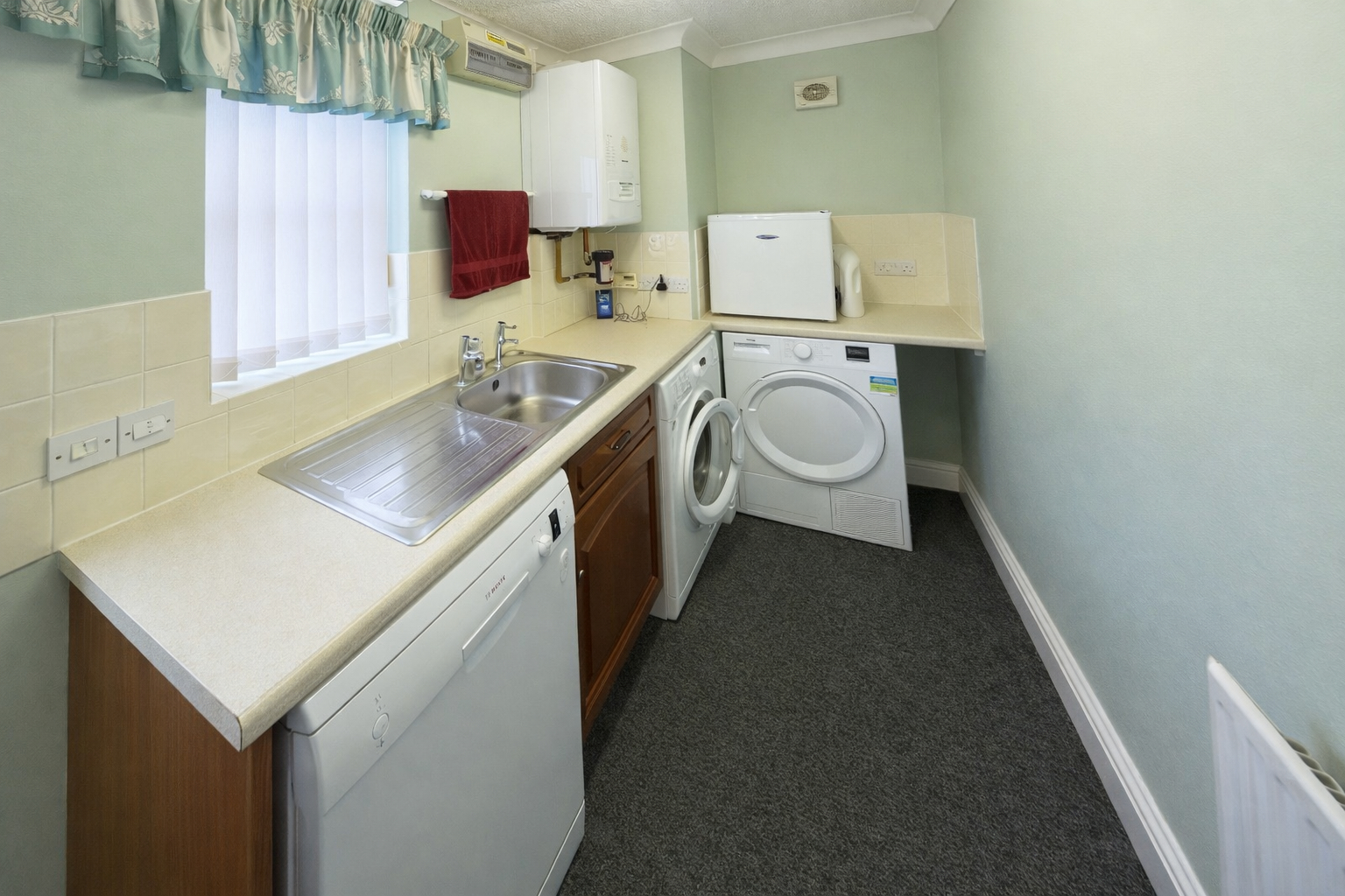 UTILITY ROOM 11' 9" x 4' 11" (3.59m x 1.52m) maximum Modern wall mounted Glow Worm gas fired central heating boiler, consumer unit, single drainer stainless steel sink unit set within worktop with store cupboard beneath, plumbing and space for washing machine and dishwasher, space for tumble dryer, fluorescent strip light, radiator, UPVC window, half glazed UPVC external entrance door.