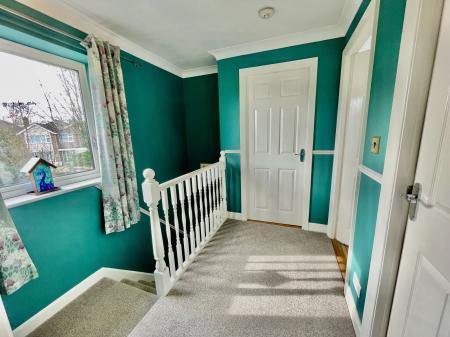 FIRST FLOOR GALLERIED LANDING 7' 11" x 7' 5" (2.43m x 2.27m) UPVC double glazed window to the rear elevation, coved and textured ceiling, centre light point, smoke alarm, access to loft space, door into: