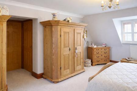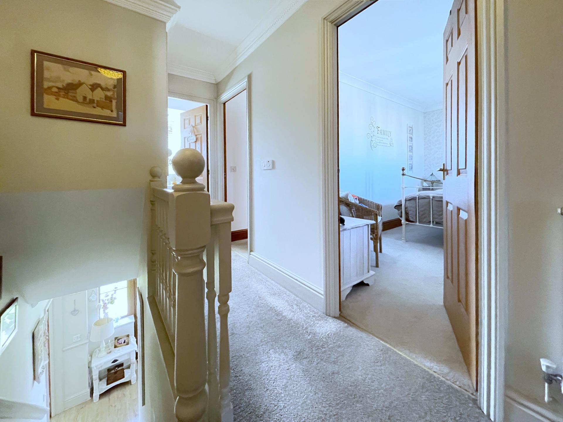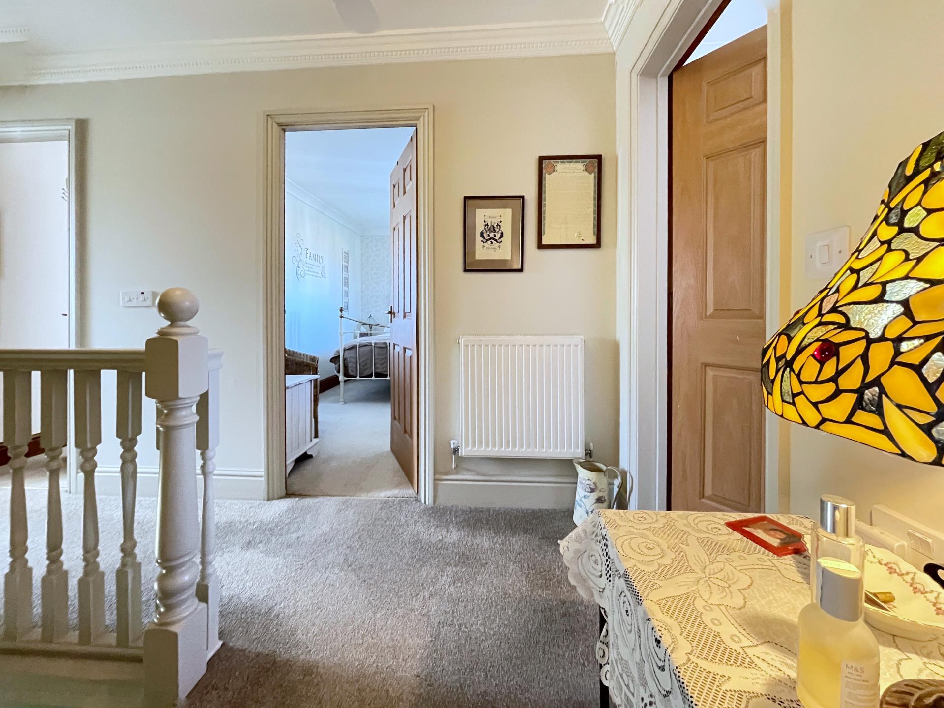 FIRST FLOOR GALLERIED LANDING 6' 2" x 12' 7" (1.89m x 3.85m) Skimmed and coved ceiling, centre light point, access to loft space with loft ladder fitted, smoke alarm, radiator, storage cupboard off housing hot water cylinder with slatted shelving, alarm box, immersion switch and central heating thermostat, door to: