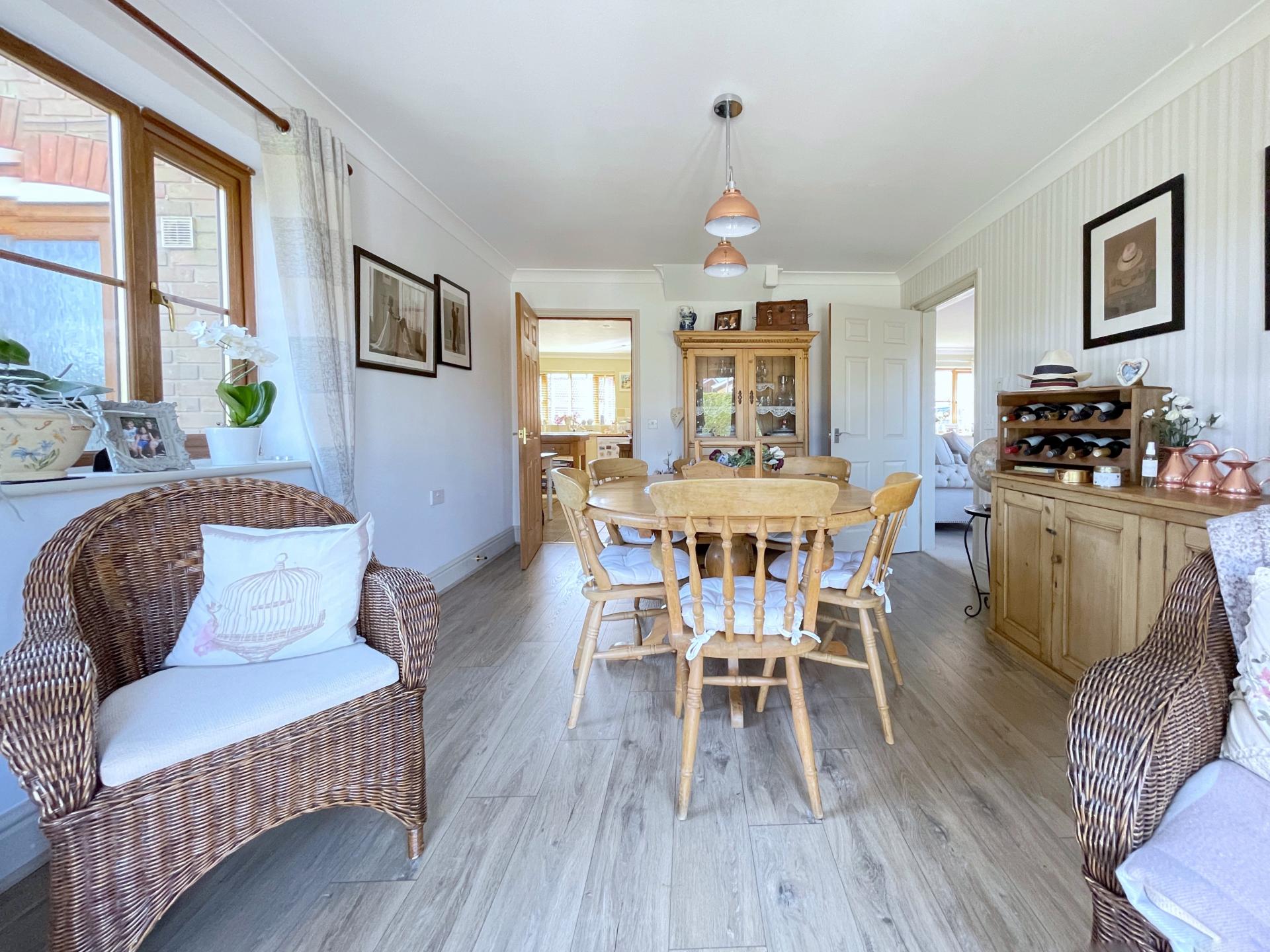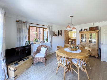 DINING ROOM 11' 3" x 15' 4" (3.43m x 4.69m) UPVC double glazed window to the side elevation, UPVC double glazed French doors to the rear elevation, skimmed and coved ceiling, centre light point, central heating thermostat, oak effect laminate flooring, TV point, door into Lounge.