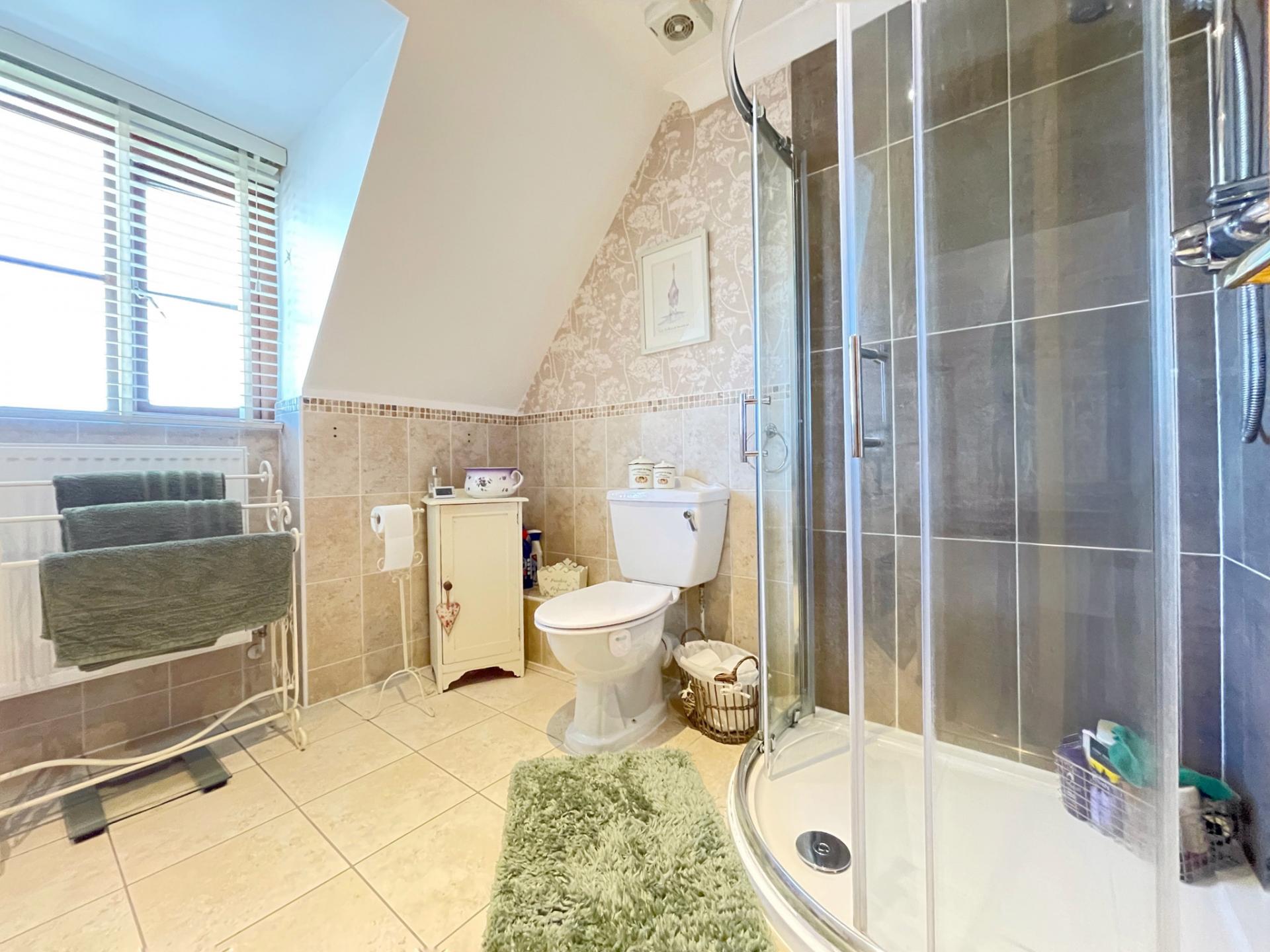 EN-SUITE 9' 6" x 8' 11" (2.92m x 2.74m) Obscured UPVC double glazed window to the rear elevation, skimmed and coved ceiling, inset downlighters, part tiled walls, tiled flooring, double radiator, fitted with a three piece suite comprising low level WC, pedestal wash hand basin with taps with shaver point and mirror, fully tiled shower cubicle with fitted thermostat shower over.