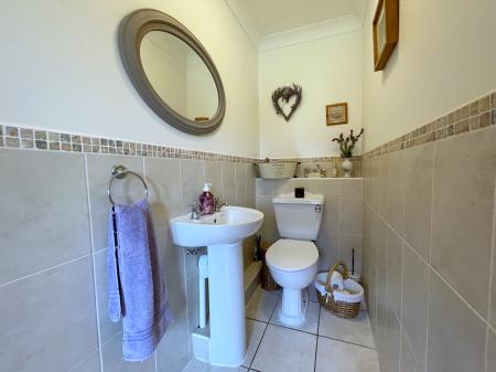 CLOAKROOM 3' 2" x 6' 9" (0.99m x 2.08m) Skimmed and coved ceiling, centre light point, extractor fan, part tiled walls, tiled flooring, fitted with a two piece suite comprising low level WC, pedestal wash hand basin with taps.