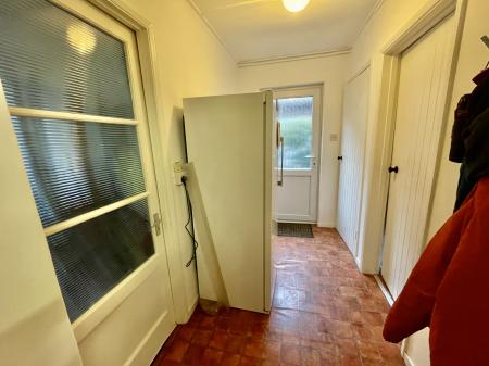 INNER HALLWAY 4' 10" x 10' 0" (1.49m x 3.07m) Skimmed ceiling, centre light point, obscured UPVC double glazed door to the side elevation, obscured glazed door into Garage, storage cupboard off with shelving and lighting, door into: