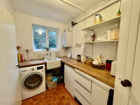UTILITY ROOM 6' 0" x 9' 7" (1.85m x 2.93m) UPVC double glazed window to the rear elevation, skimmed ceiling, centre light point, fitted with a range of base units and drawers, work surfaces over, Belfast sink with taps, wall mounted Viessman gas boiler, central heating controls, plumbing and space for washing machine, space for fridge/freezer, radiator, door into: