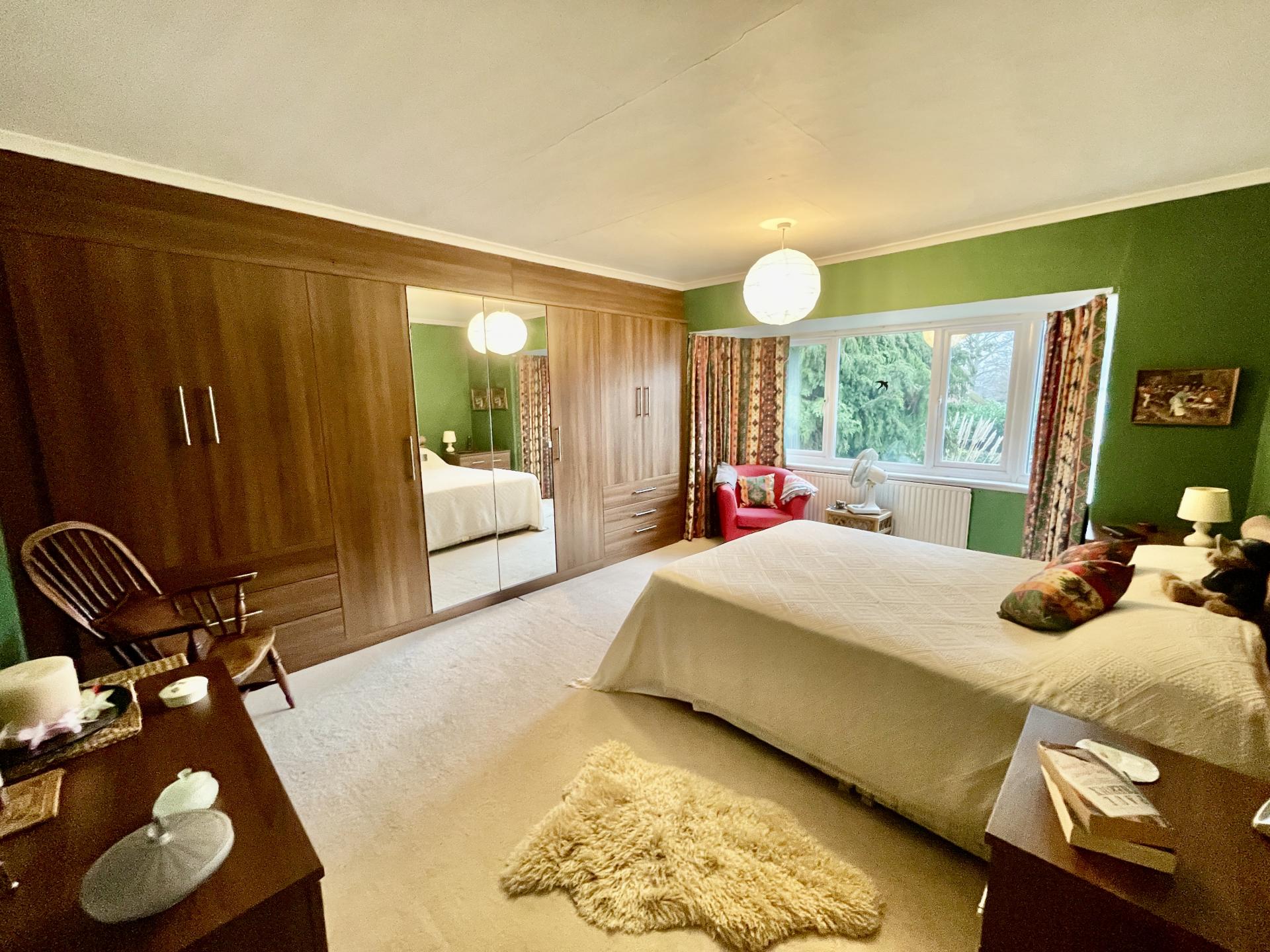 MASTER BEDROOM 11' 10" x 16' 8" (3.63m x 5.10m) UPVC double glazed bay window to the front elevation, skimmed and coved ceiling, centre light point, radiator, fitted bedroom furniture comprising triple wardrobe, 2 double wardrobes and further drawer units.