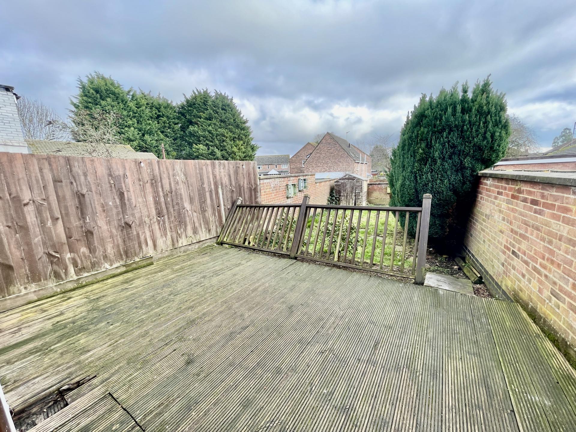 REAR GARDEN Walled garden, laid to lawn with decking.