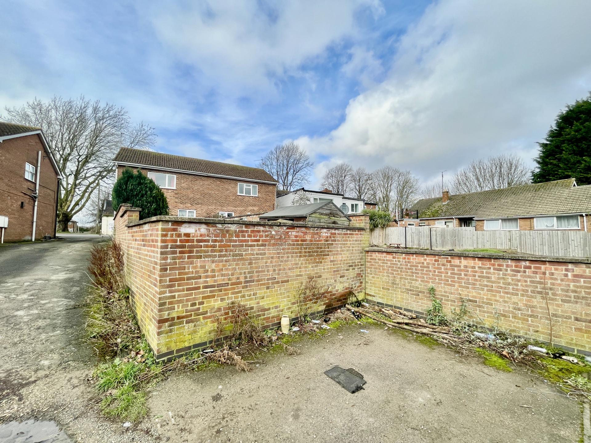 Shared driveway to the side leading into parking area. We have been advised by the vendor there is a small parcel of land directly beyond the parking area which is split equally between this and the three adjoining properties.